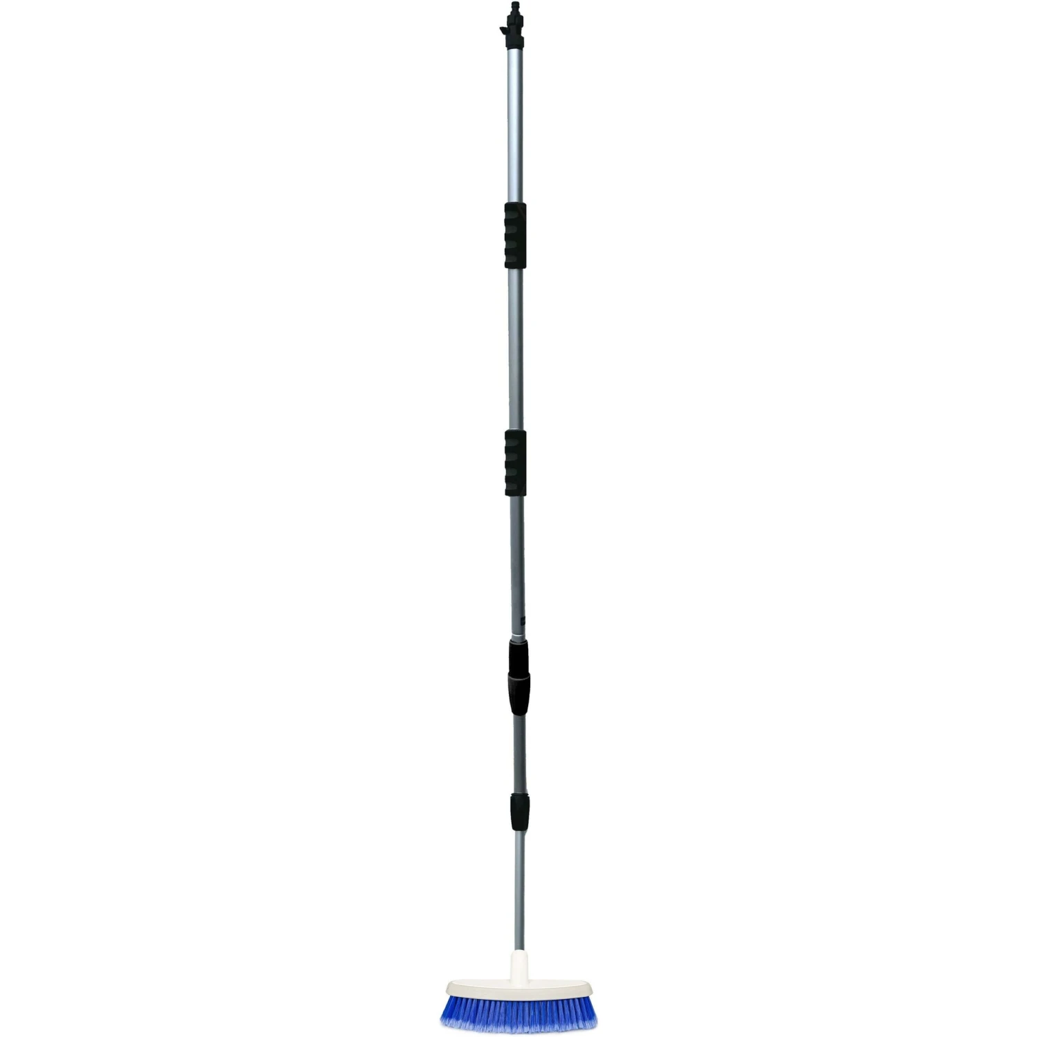 De 123 Products WDL Halfrond PBT wasborstel is gemakkelijk in gebruik. Wanneer u een tuinslang aan de 123 Products wasborstel vastmaakt, dan komt het water er aan de voorzijde uit. Het model is voorzien van een 140 cm lange steel die u kunt verlengen tot 420 cm. Zo kunt u gemakkelijk bij alle hoge plekken komen.