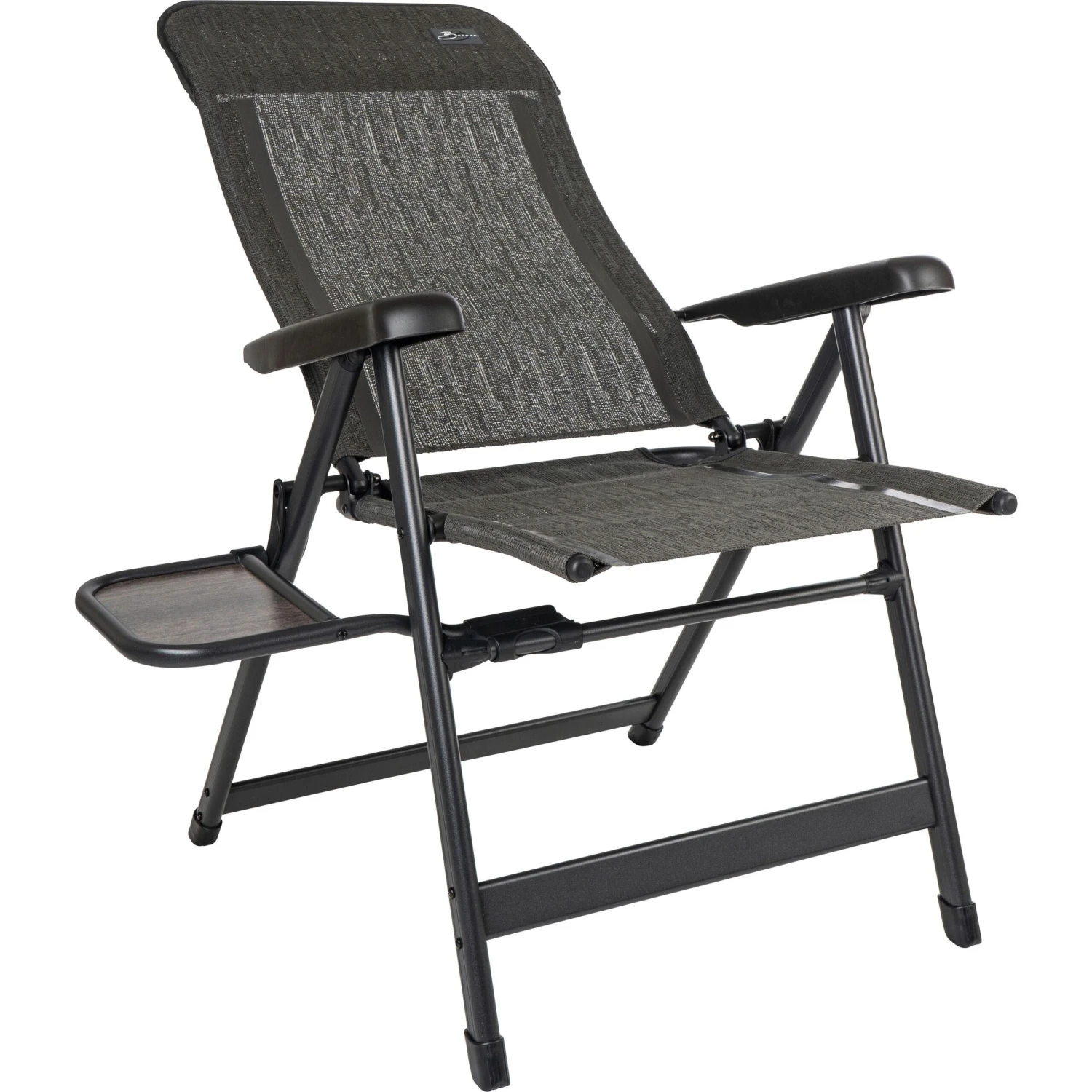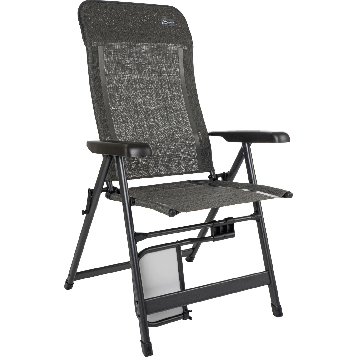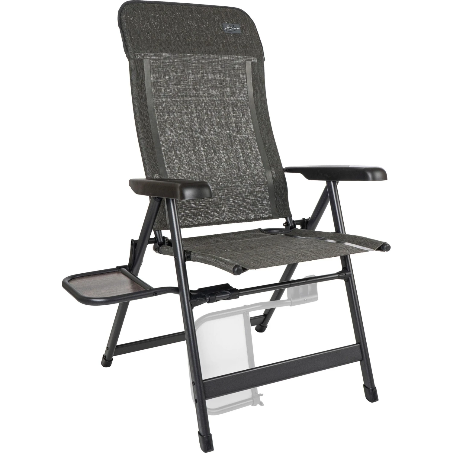 De Bardani Domenica Plus campingstoel in urban grey is een kampeerstoel die zeer plat op te vouwen is. De stoel is in zeven posities verstelbaar en heeft een fijne, hoge rugleuning. Het frame is van aluminium en het doek is gemaakt van textileen. Deze Domenica Plus stoel beschikt ook over een uitklapbaar zijtafeltje waar u uw spullen op kwijt kunt.