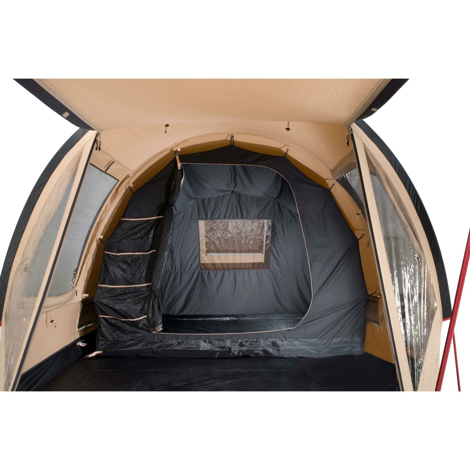 De tent heeft een Permanent “Air Vent” ventilatiesysteem aan de achterzijde voor een goede ventilatie en een stroomkabel doorvoer systeem met ritsen, aan de linker- en rechterzijde. Naast de vooringang heeft de tunneltent een zij-ingang met horraam. Het slaapvertrek heeft een lengte van lengte van 230 cm en is extra donker. De gordijnen hebben een variosysteem voor traploos verduisteren met perfecte afsluiting. De tunneltent is inclusief luifelstokken, haringen, een draagtas en scheerlijnen.