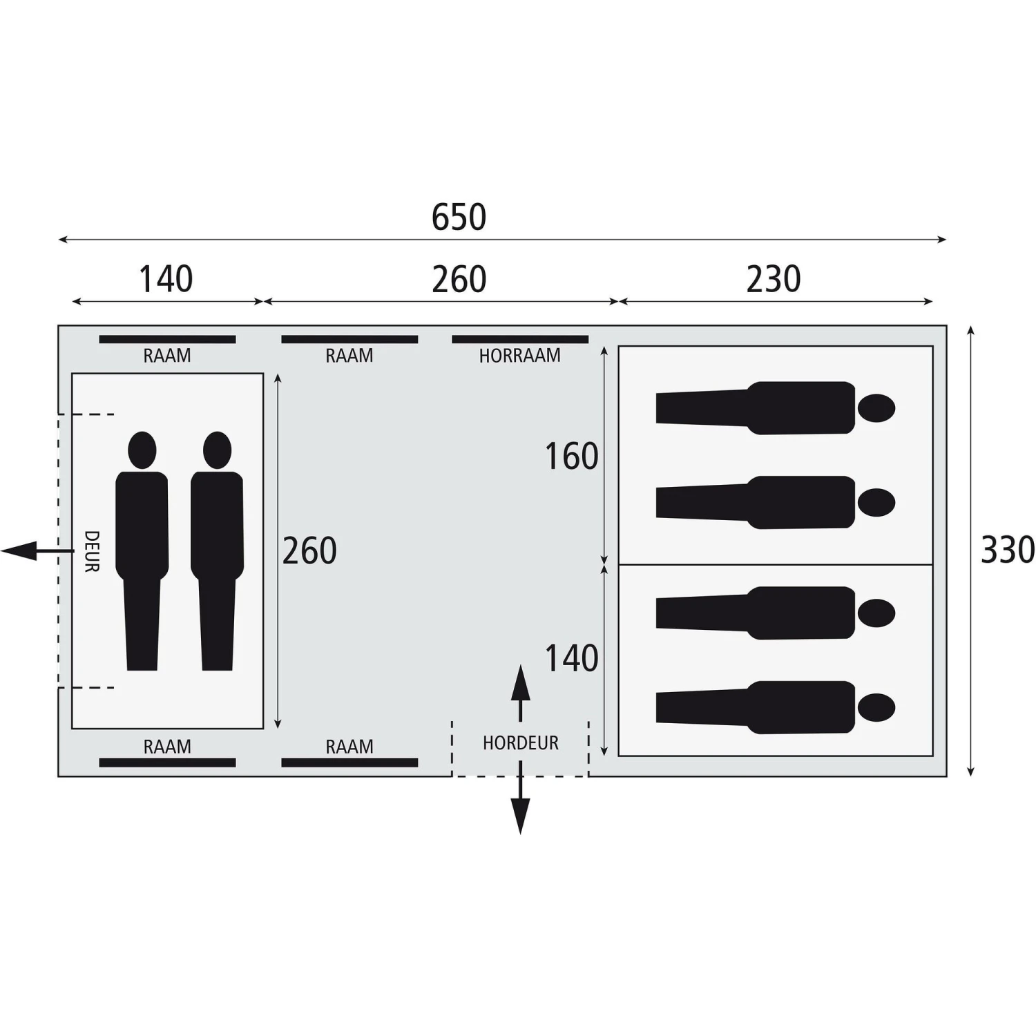 De Bardani Porto Grande 650 RSTC tunneltent is geschikt voor maximaal 5 personen. De tent heeft een vis-à-vis indeling, een voor- en zij-ingang en een stahoogte . De ruime slaapcabines zijn zeer ruim en donker voor optimaal slaapcomfort.