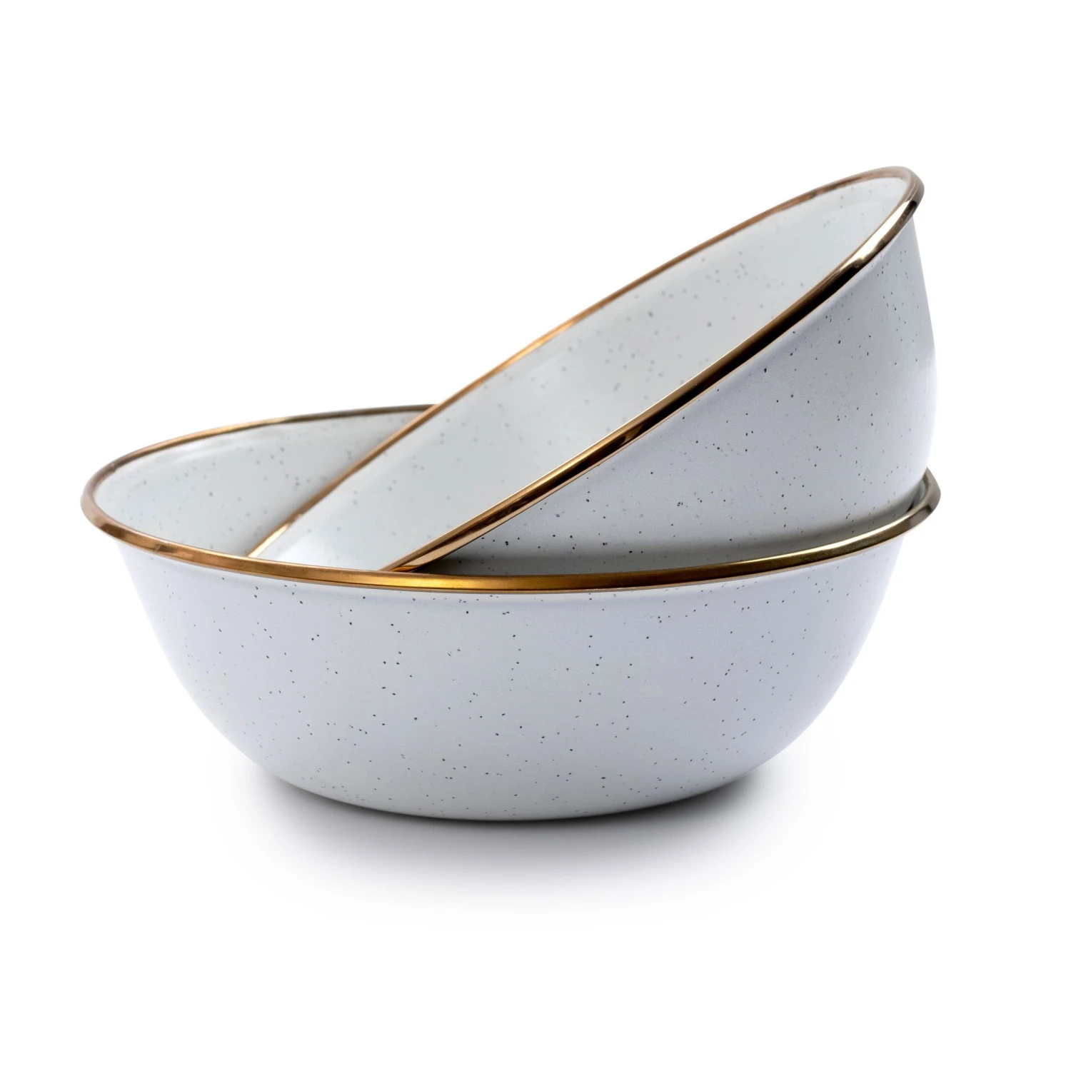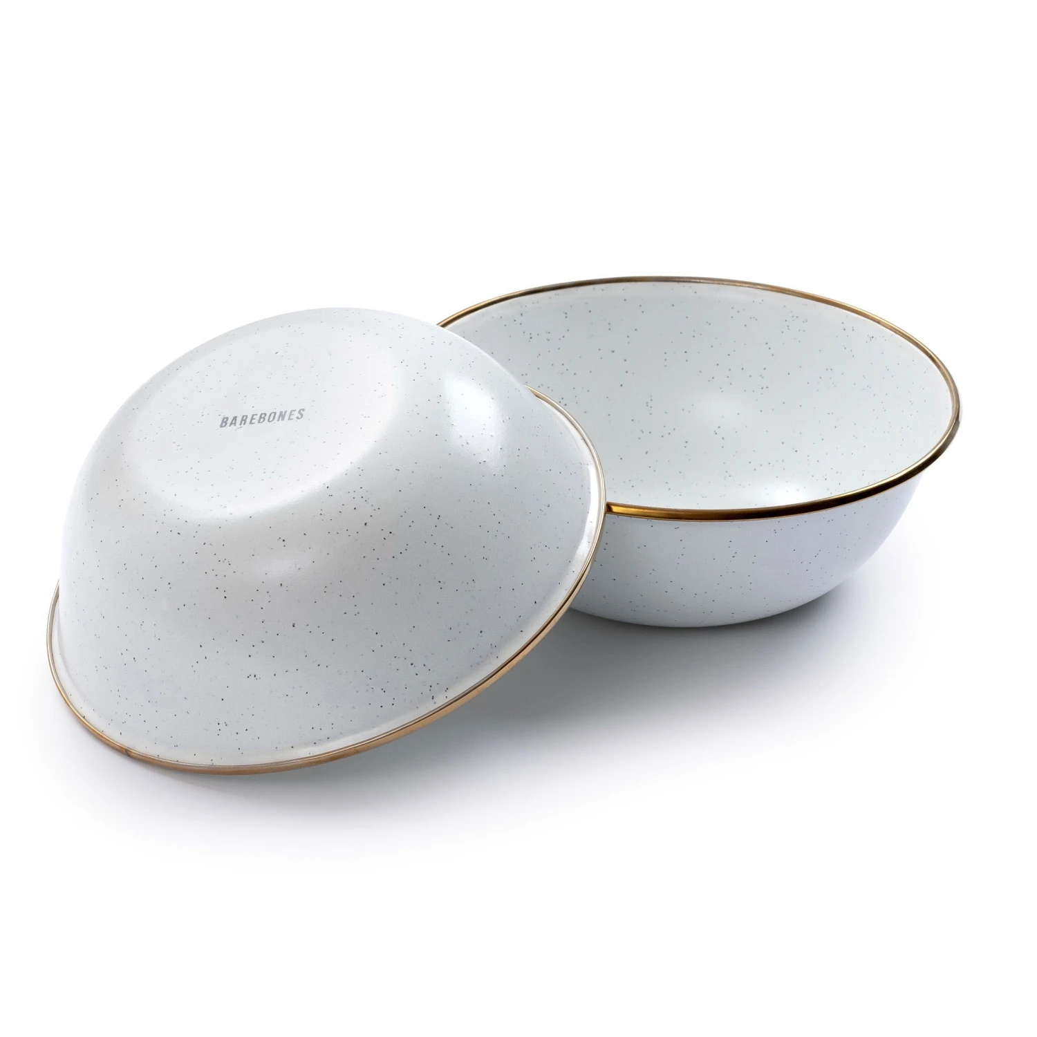 De emaille schaaltjes van Barebones maken uw vakantie of picknick servies compleet. De schaaltjes zijn robuust, duurzaam en bijzonder mooi met de hand afgewerkt met een bronskleurige rand.