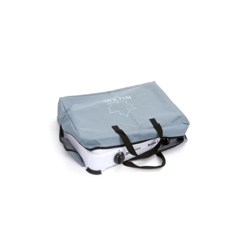 Deze Bo-Camp opbergtas is speciaal gemaakt om een 2-pits kooktoestel in op te bergen en te vervoeren. De tas zorgt ervoor dat een kooktoestel niet gaat roesten door vocht of vuil wordt. Het materiaal van de opbergtas bestaat uit 600D polyester, waardoor het nodige gewicht in de tas gedragen kan worden.
