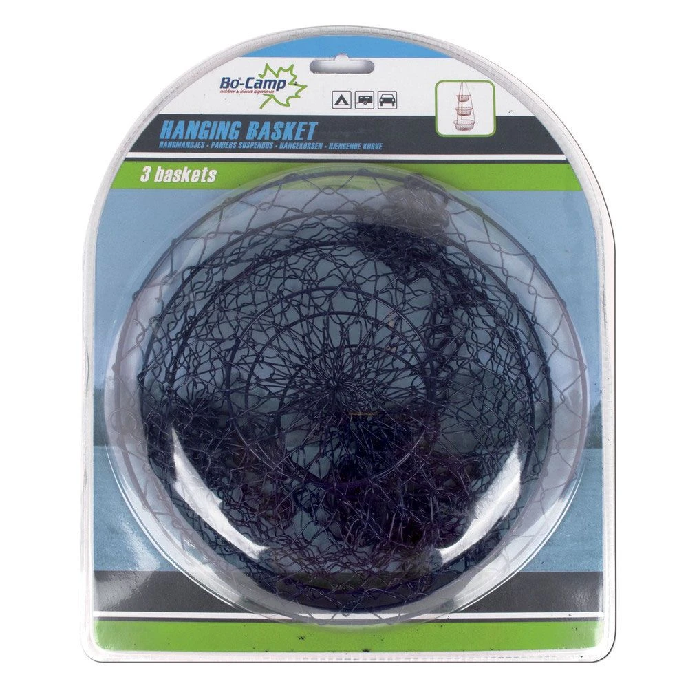 De hangmandjes van Bo-Camp zijn gemaakt van stevig metaal. De opbergmandjes bestaan uit 3 lagen.
