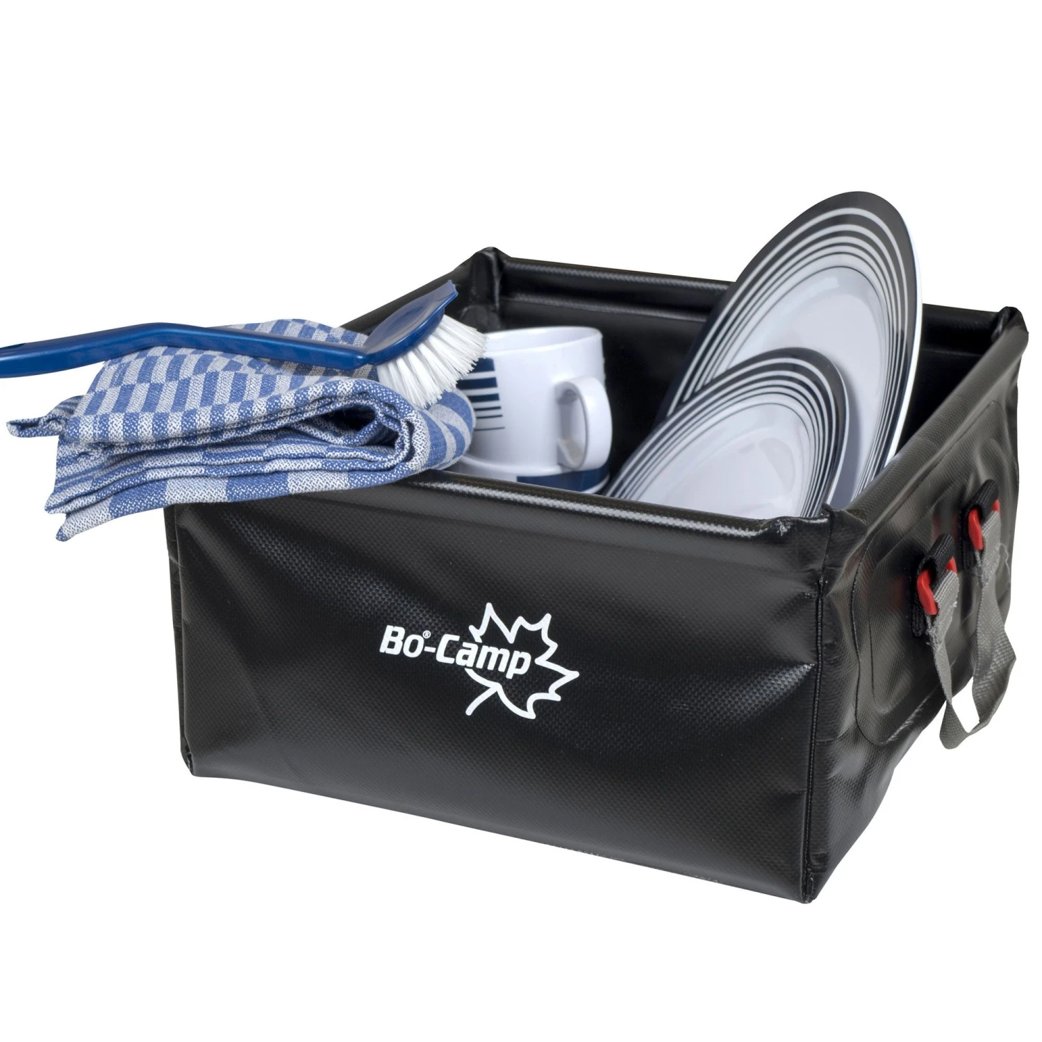 De Bo-Camp afwasteil is ideaal om uw vaat in af te wassen op de camping, maar ook om spullen in te vervoeren en op te bergen. De wasbak, heeft een inhoud van 12 liter, is opvouwbaar, gemaakt van polyester en aan twee zijden gecoat.