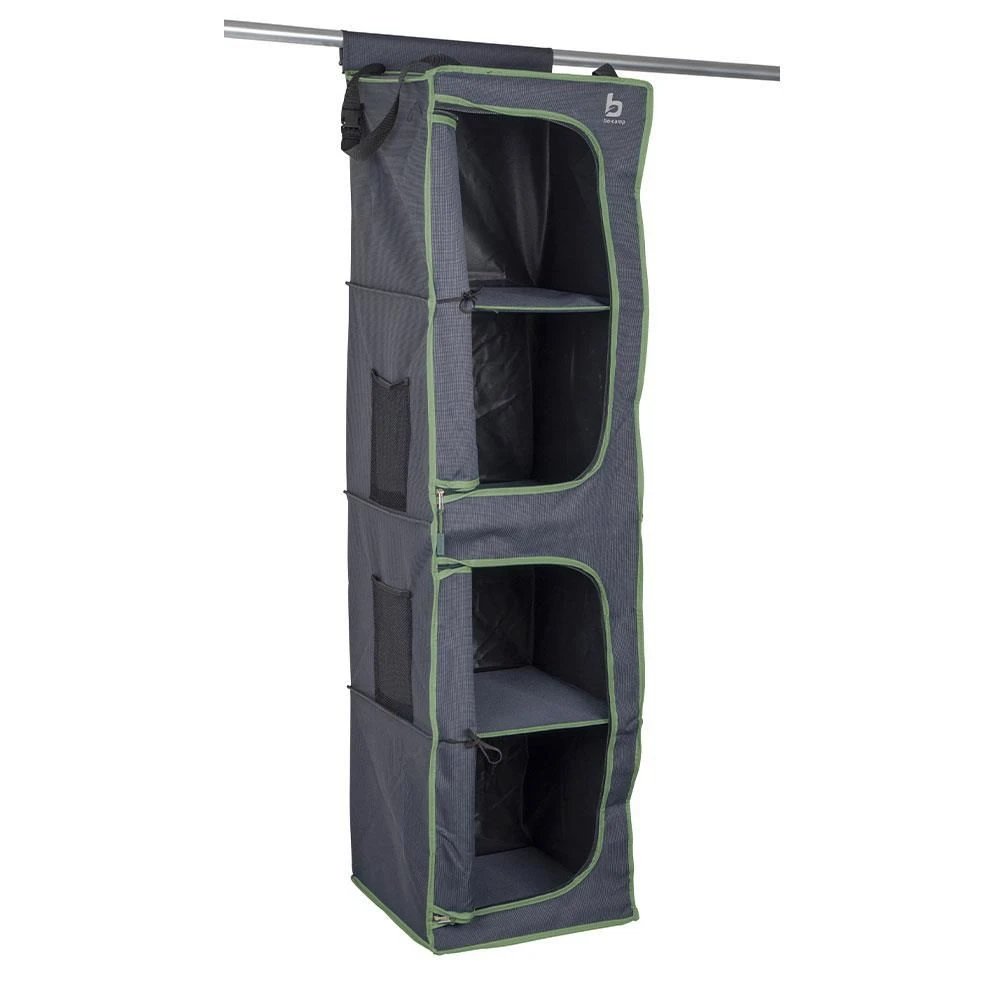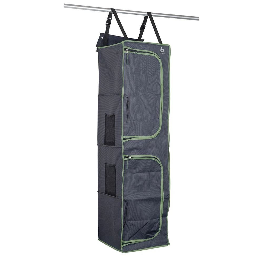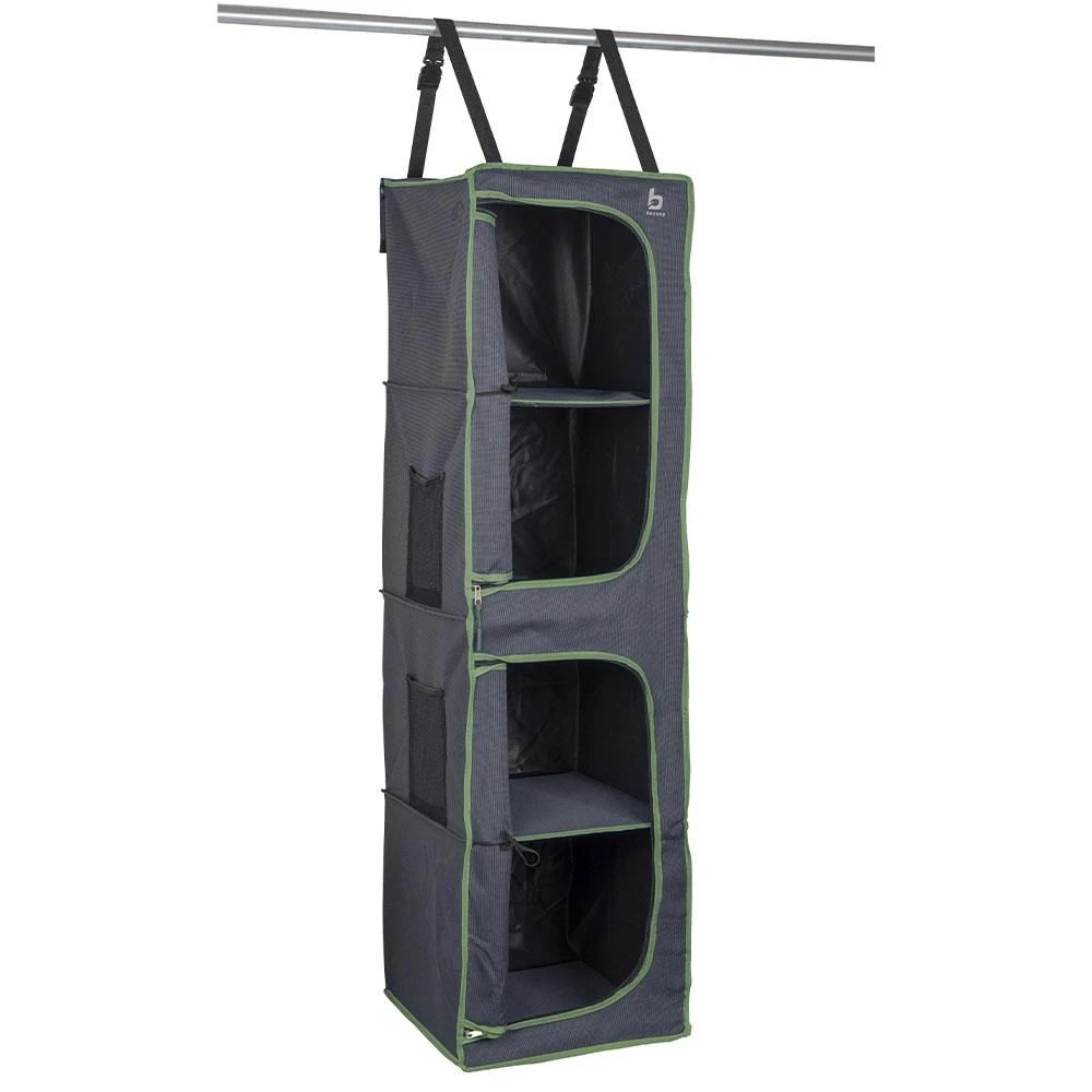 Deze Bo-Camp Tentorganizer 4-vaks met deurtjes is gemaakt van stevig 600D Polyester. Deze Bo-Camp organizer is voorzien van vier 30 x 17 x 84 cm vakken en 4 kleine mesh vakken. De vier grote vakken kunnen afgesloten worden met ritsdeuren. Hierdoor kunnen bv. zonlicht of stof uw spullen niet aantasten.