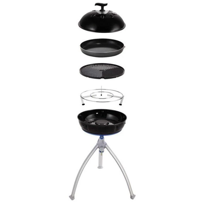 De Grillo Chef 2 barbecue van Cadac is een compacte gasbarbecue die gemakkelijk te monteren is. De driepoot is eenvoudig los te schroeven en dankzij de meegeleverde draagtas neemt u de Grillo Chef 2 barbecue overal mee naar toe. Dit product heeft een piΓ«zo-ontsteking en bovendien is het rooster voorzien van de Cadac GreenGrill coating. Deze coating is een duurzame, milieuvriendelijke keramische coating die gemakkelijk schoon te maken is. Dankzij de pandrager kun jeΒ deze barbecueΒ ook als kooktoestel gebruiken. In de deksel zit een thermometer. De gasbarbecue is inclusief chef pan en een grilrooster.