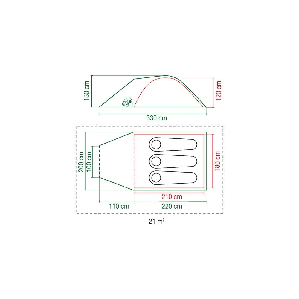 Het PE grondzeil zit vast aan de tent en heeft opstaande randen waardoor er geen water in de tent kan komen. De buitentent is gemaakt van polyester met een waterkolom van 4.500 millimeter en de tentnaden zijn getaped.