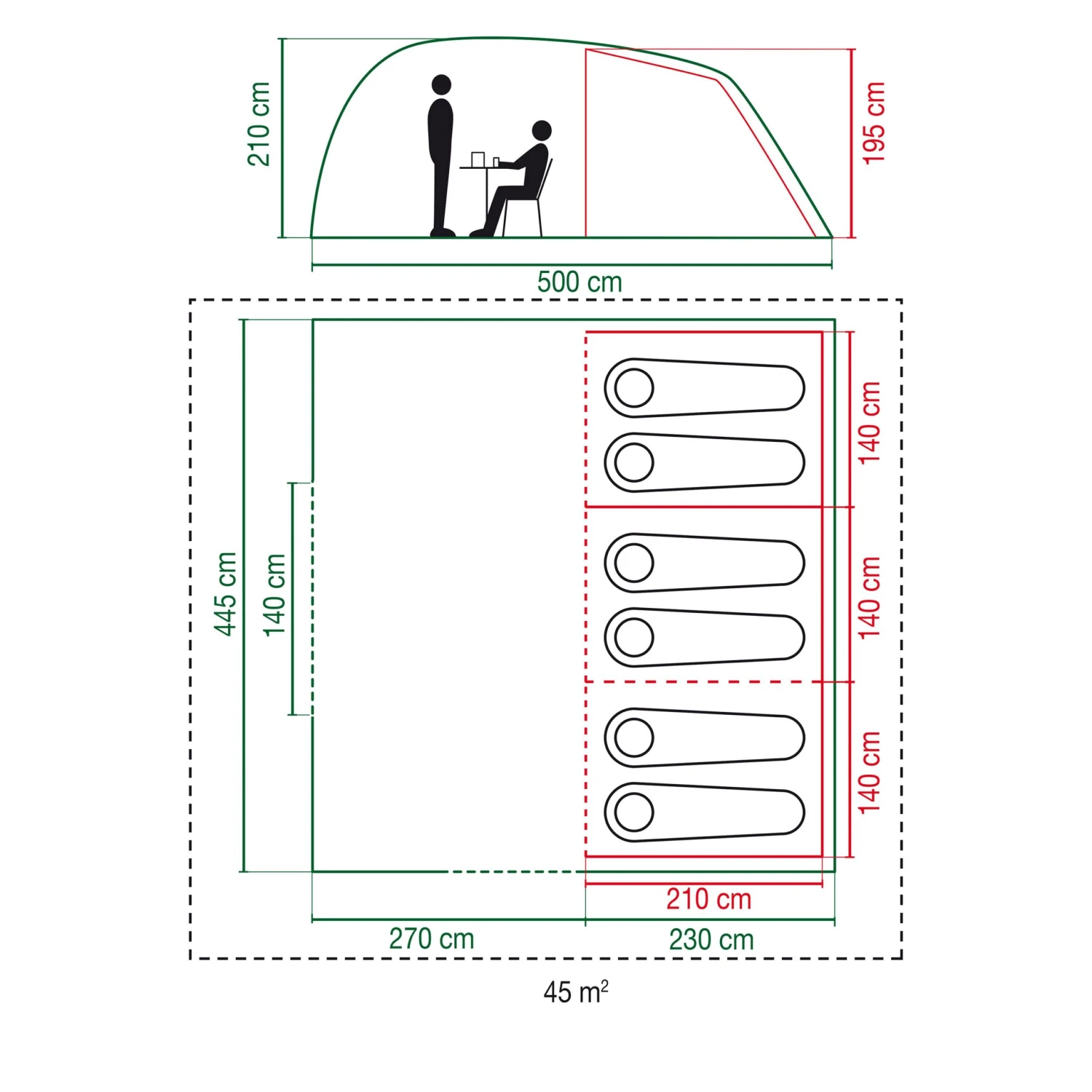 De Coleman Vespucci 6 tunneltent is voorzien van een leefruimte die groot genoeg is voor zowel een eettafel als vier stoelen. Door het geïntegreerde grondzeil blijven zowel insecten als het slechte weer buiten de deur. Deze Coleman tunneltent heeft drie slaapcabines met elk een afmeting van 210 x 140 centimeter, waardoor er eenvoudig meerdere luchtbedden kunnen worden neergelegd. De tunneltent is zowel snel als eenvoudig op te zetten en uitgerust met reflecterende scheerlijnen, waardoor het risico op struikelen minimaal is. Door de stahoogte kunt u zich comfortabel voort bewegen en genieten van een ontspannen vakantie.