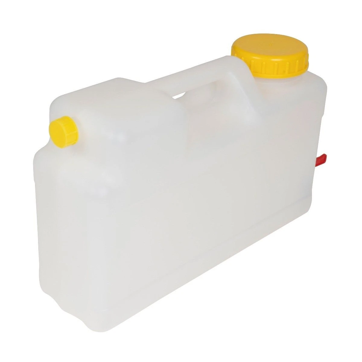 Deze Comet Universeel Jerrycan DIN 96 12 liter is een draagbare watertank geschikt voor drinkwater. De handgreep in de watertank is geïntegreerd en hierdoor kan de jerrycan comfortabel worden gedragen. De jerrycan is voorzien van een 3/4 inch schroefdraad met een aftapkraan. Daarnaast is de jerrycan uitgevoerd met een extra schroefdraad waarop de dop gedraaid kan worden. Zo is de jerrycan gemakkelijk af te sluiten en kan er geen vuil bij komen. Door de grote halsopening kunnen de meest voorkomende dompelpompen gestoken worden.
