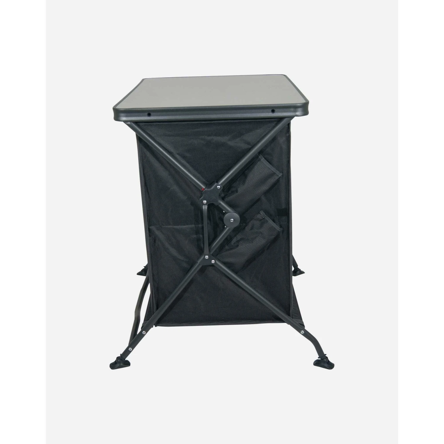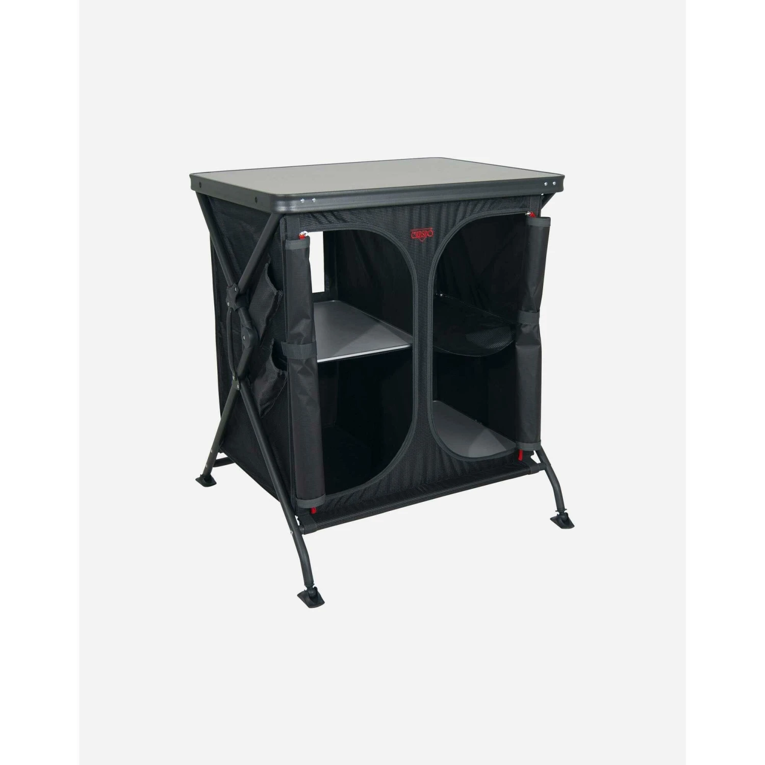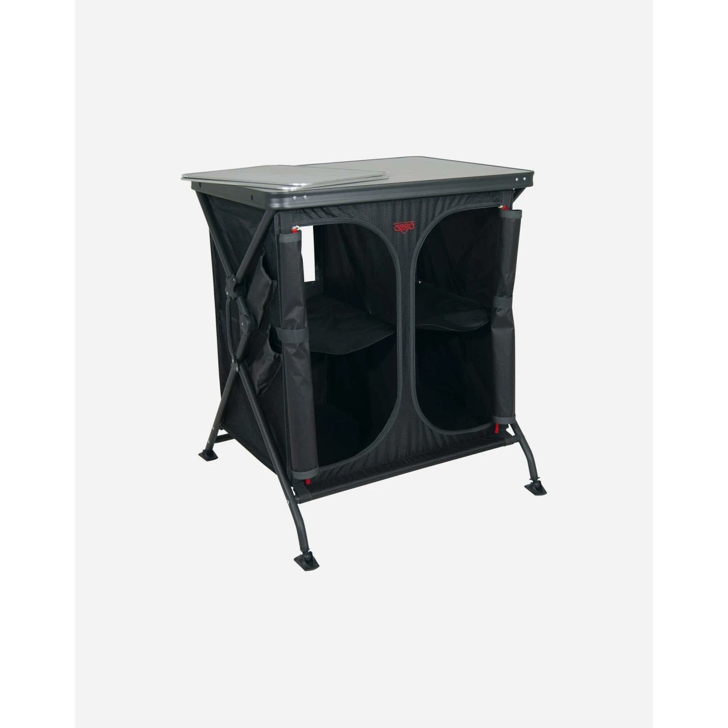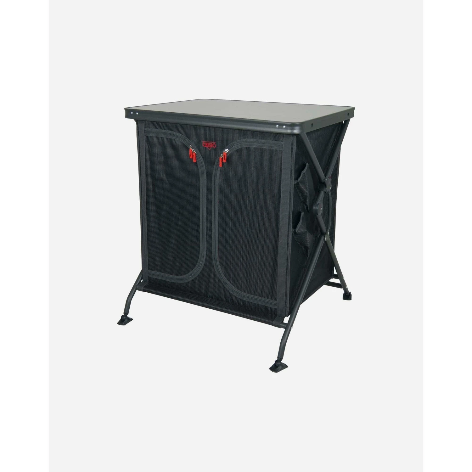 Het Crespo AP-104 kookeiland is een zeer stevige kookkast met twee vakken én legplanken. Het kookeiland van Crespo is gemakkelijk op te zetten. Ook het meenemen van het eiland gaat eenvoudig door de meegeleverde opbergtas. De kookkast heeft een melamine oplegblad wat watervast en hittebestendig is. Het zwarte frame heeft verstelbare poten. De stabilisatoren zorgen ervoor dat de kookkast op elke ondergrond stabiel en stevig staat.