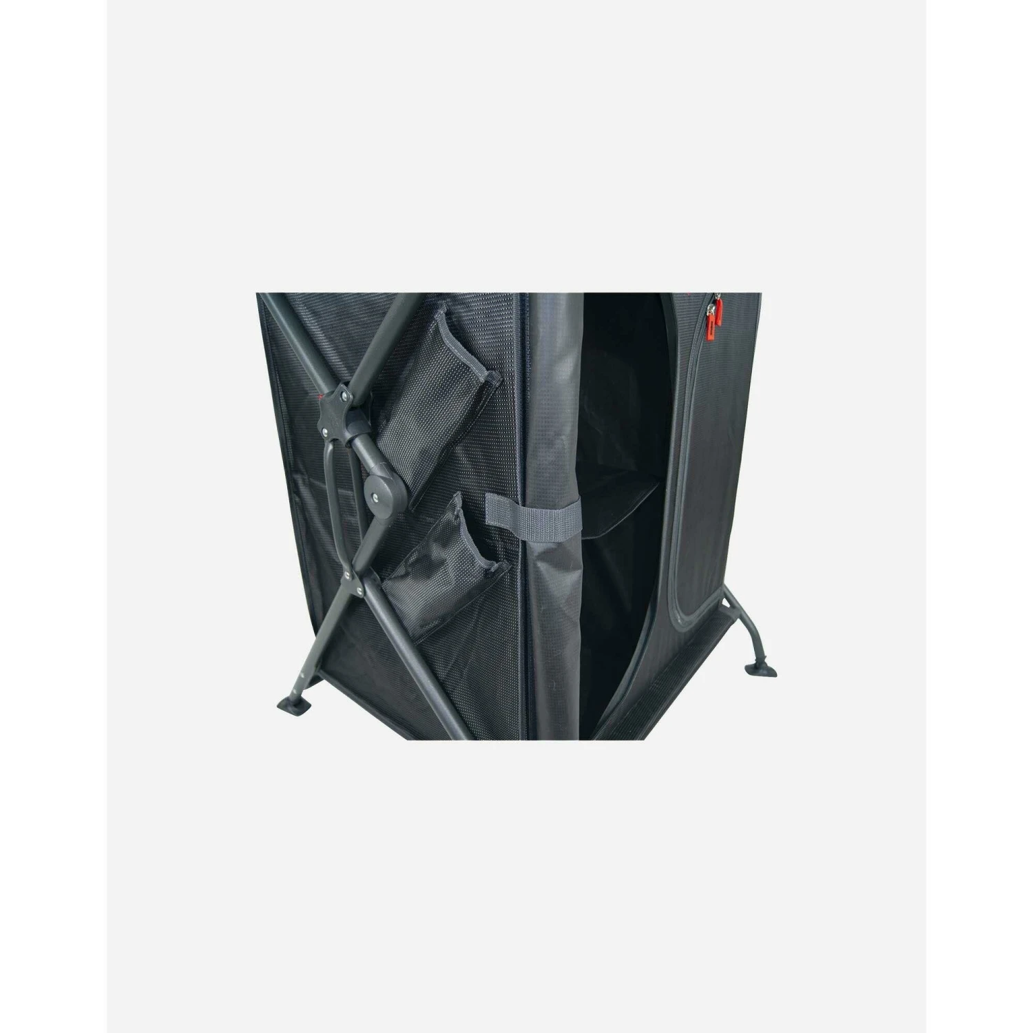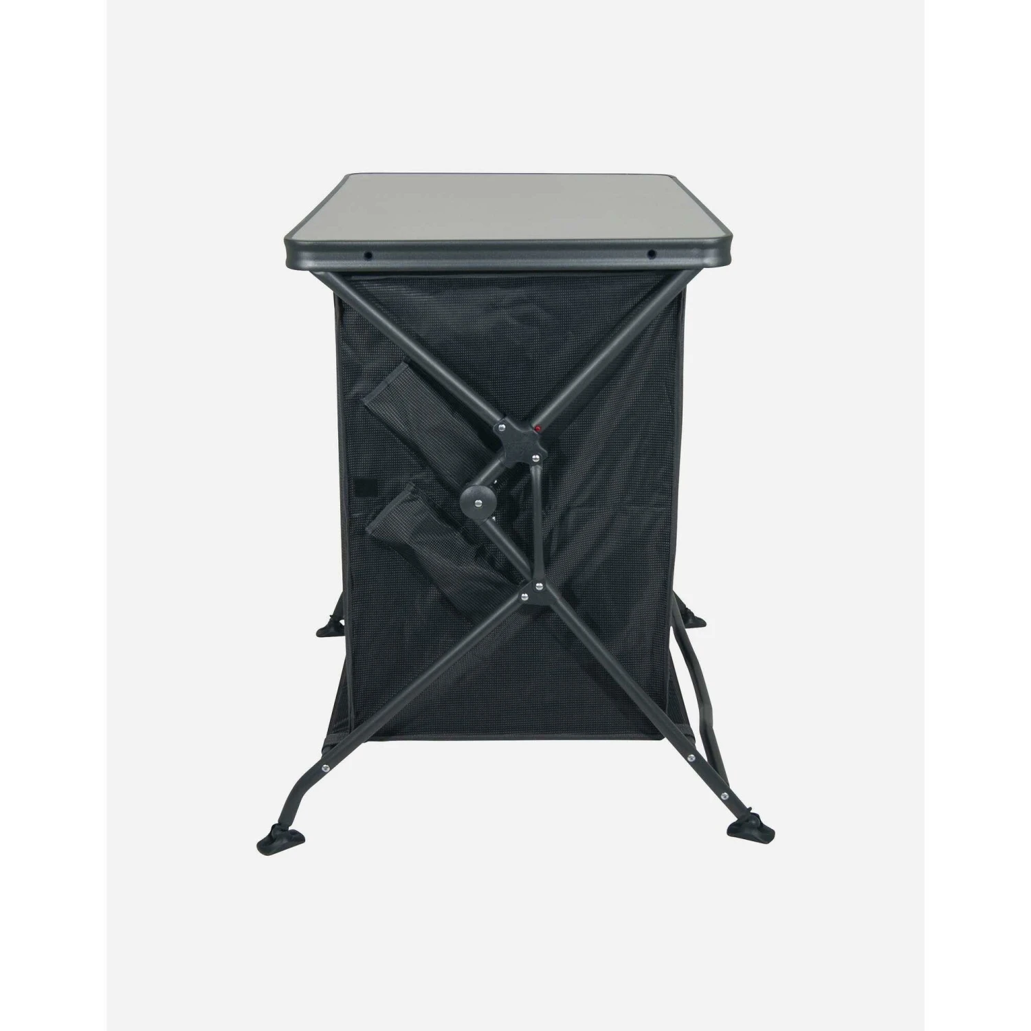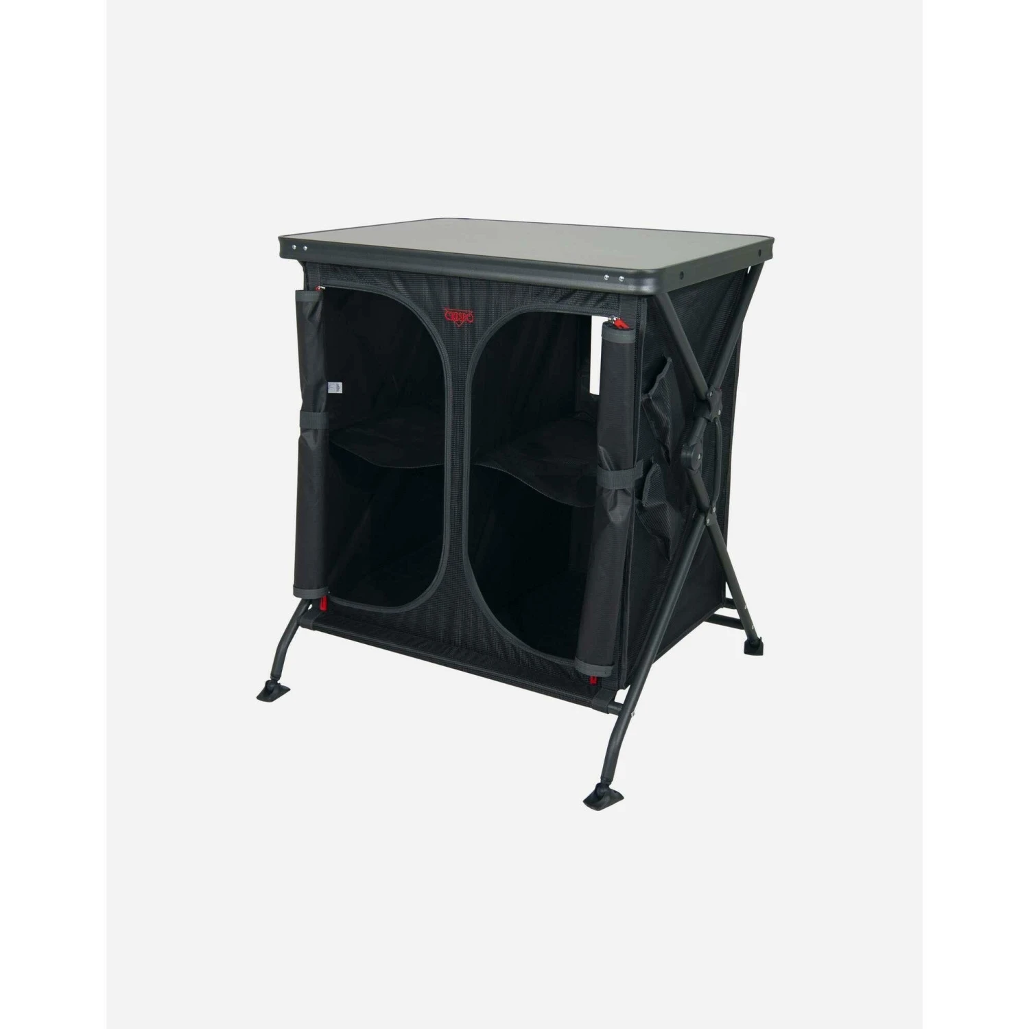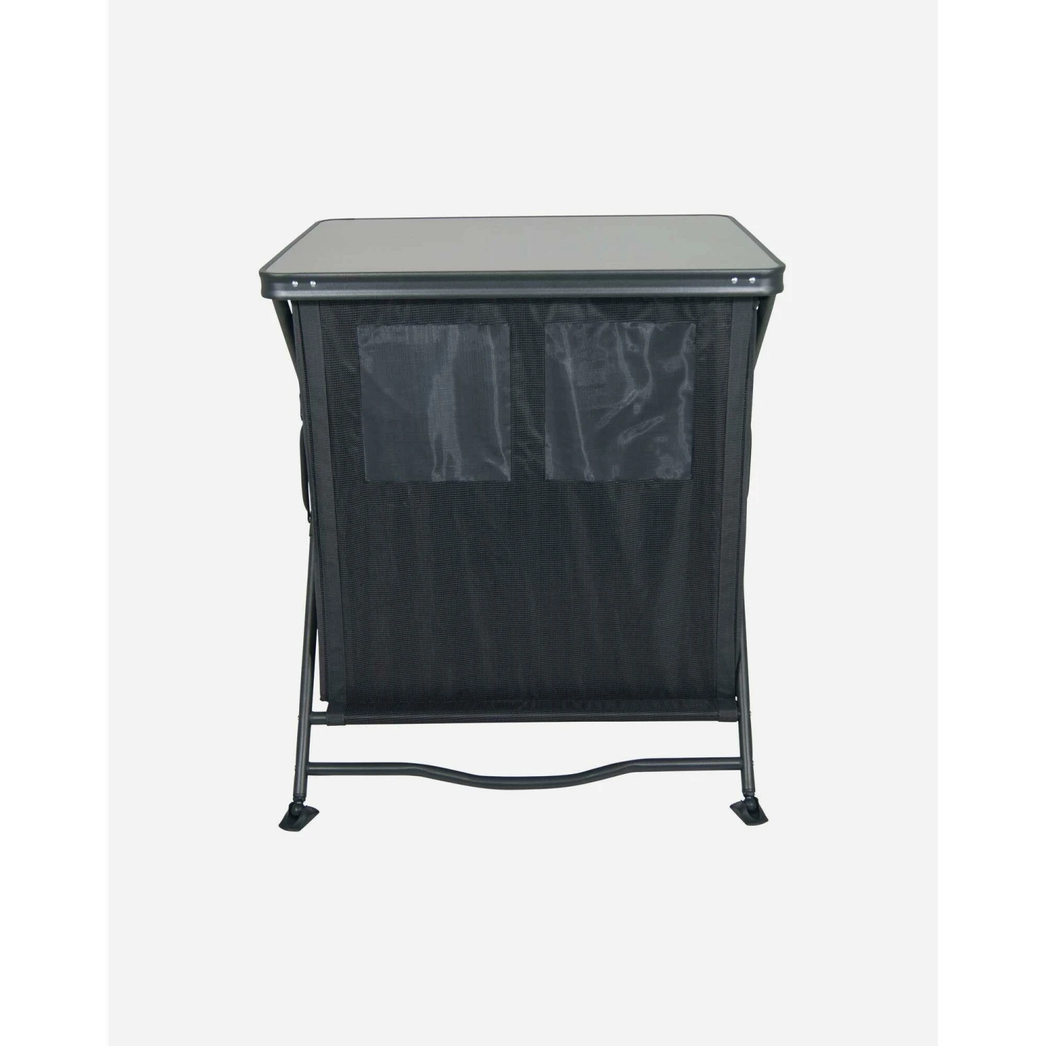 Het Crespo AP-104 kookeiland is een zeer stevige kookkast met twee vakken én legplanken. Het kookeiland van Crespo is gemakkelijk op te zetten. Ook het meenemen van het eiland gaat eenvoudig door de meegeleverde opbergtas. De kookkast heeft een melamine oplegblad wat watervast en hittebestendig is. Het zwarte frame heeft verstelbare poten. De stabilisatoren zorgen ervoor dat de kookkast op elke ondergrond stabiel en stevig staat.