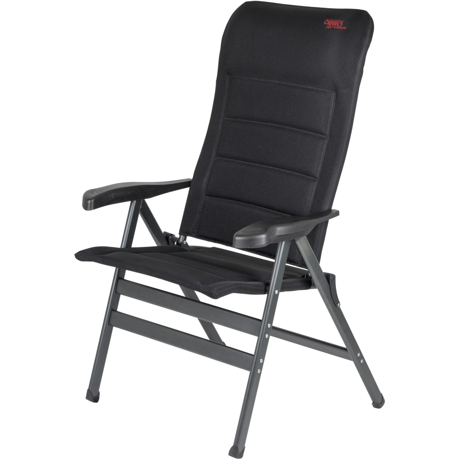 De Crespo AP-238 XL Air-Deluxe campingstoel zwart is een zeer ruime en luxe standenstoel. De Crespo campingstoel is geschikt voor grotere mensen met een draaggewicht tot 200 kilo. De rugleuning van de stoel is te verstellen in zeven verschillende standen voor optimaal comfort. De gepolsterde 3D stof is samen met de comfortabele vulling extra doorlatend. De stoel droogt dan ook aanzienlijk sneller dan stoelen met een traditionele schuimvulling. De zitting, rugleuning en armleggers van de kampeerstoel zijn ergonomisch gevormd. Het geanodiseerde H-frame zorgt voor extra stevigheid en stabiliteit. De stoel is zeer gemakkelijk mee te nemen door de compactheid wanneer deze is ingeklapt.