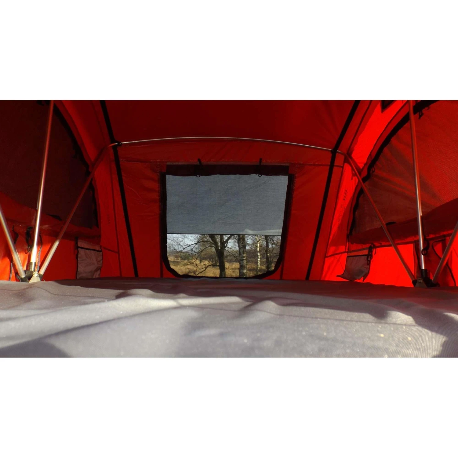 De tent is voorzien van grote ramen met blinderingsoptie. Hierdoor is ook overdag een goede slaapomgeving te creëren. Doordat de tent op uw auto staat heeft u een rijk uitzicht. De daktent heeft bij de ingang een luifel om extra schaduw te creëren.