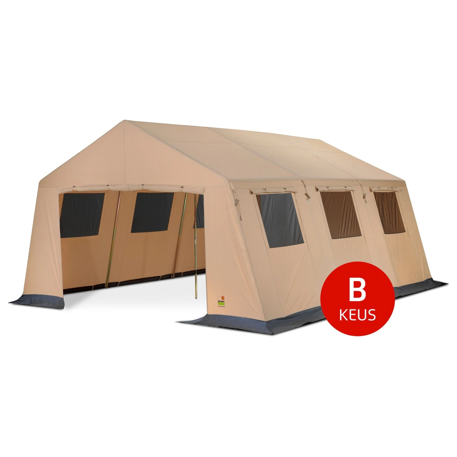 Let op! Dit is een b-keus groepstent, die tegen een gereduceerde prijs aangeboden wordt. Dit betekent dat het tentdoek kleurverschil kan hebben en kan krimpen. Op kleurverschil en krimpen van het tentdoek wordt bij dit model geen garantie gegeven.