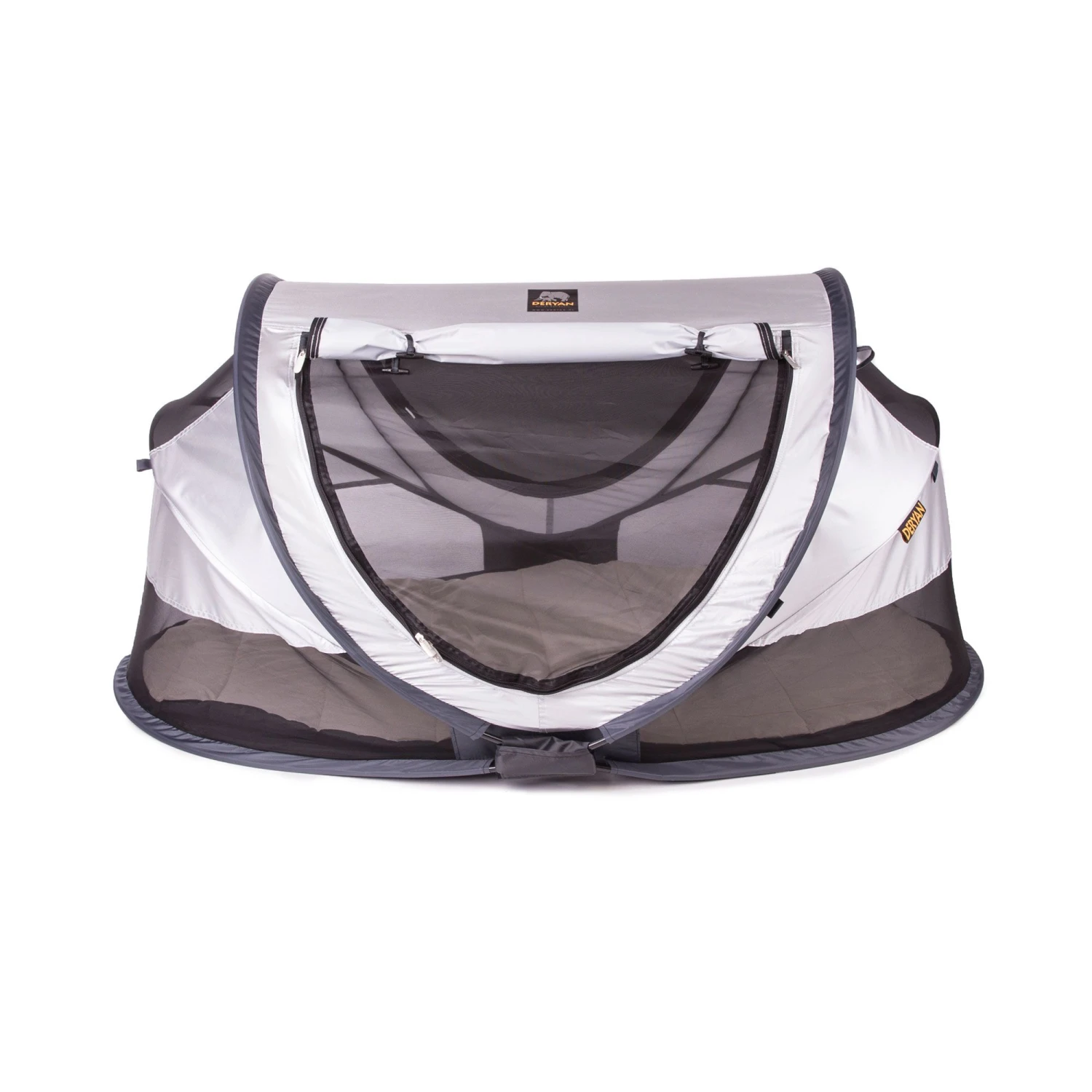 Het Peuter Luxe campingbed is een compact pop-up tentje wat binnen twee seconden kan worden uitgeklapt. Binnen 8 seconden is het weer ingeklapt om hem in de bijbehorende draagtas op te bergen.