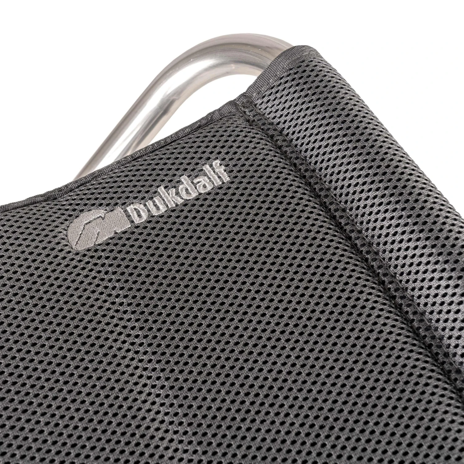Het Dukdalf Soul 8800 camping krukje heeft een aluminium frame waardoor het zeer stabiel en sterk is. Het Dukdalf camping krukje heeft een maximaal draagvermogen van 100 kg. De kruk is voorzien van mesh bekleding waarmee het een hoog ademend vermogen heeft en een blijvend comfortabele zitervaring geeft.
