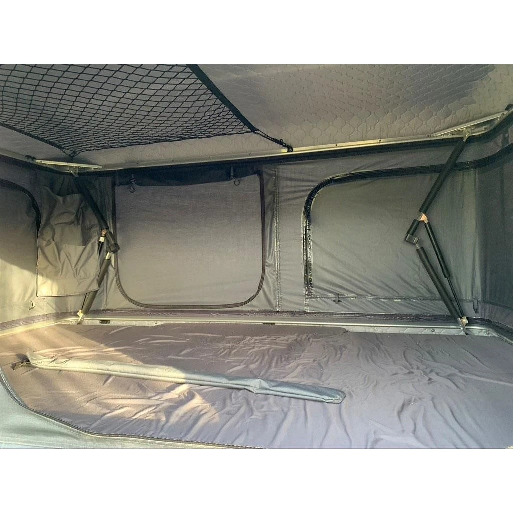 Het tweepersoons matras heeft een hoes van katoen met een rits erin verwerkt, waardoor de hoes kan worden gewassen. Onder het matras ligt een D3 mesh ventilatiemat voor optimaal slaapcomfort. Aan het plafond is een net en opruimvakken geplaatst waar u uw persoonlijke eigendommen in kunt opbergen zodat u deze bij de hand heeft. De tent heeft een binnenmaat van 206 x 134 x 98,5 centimeter.
