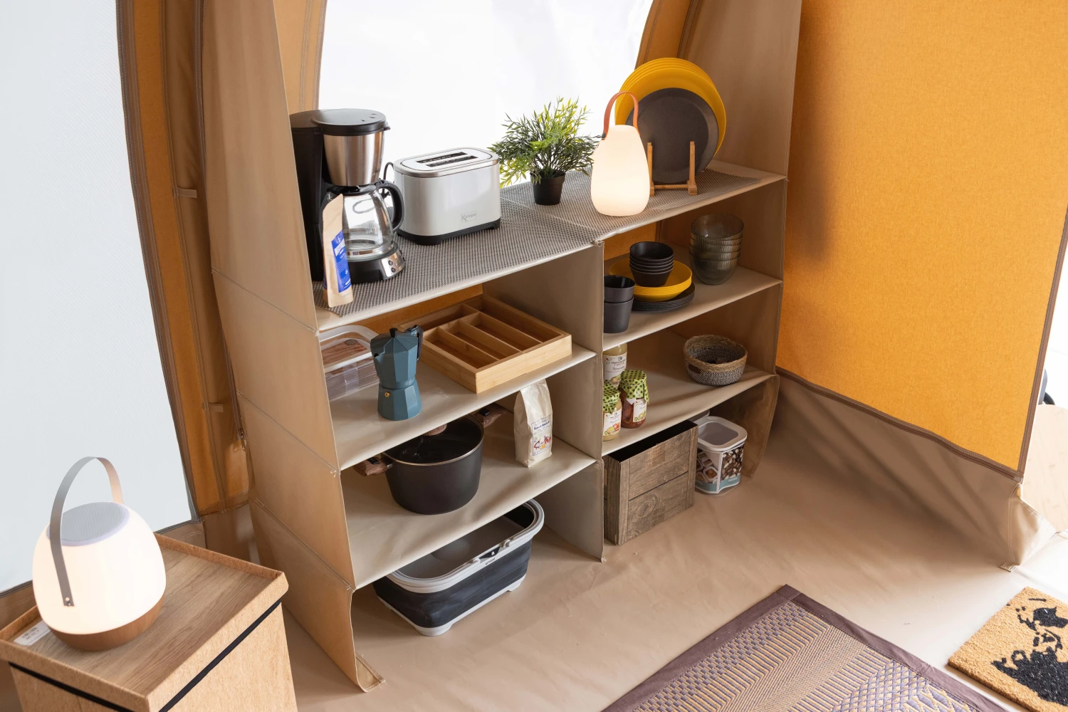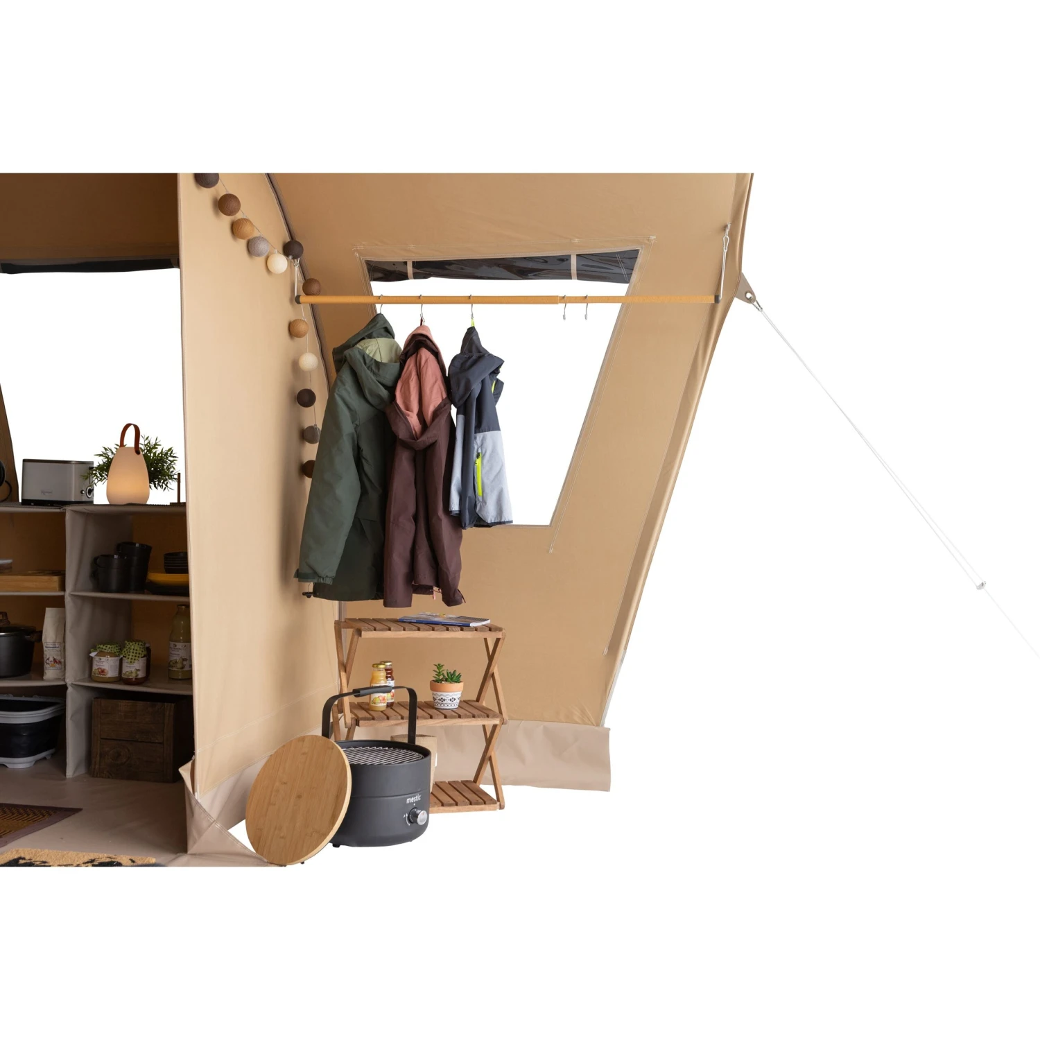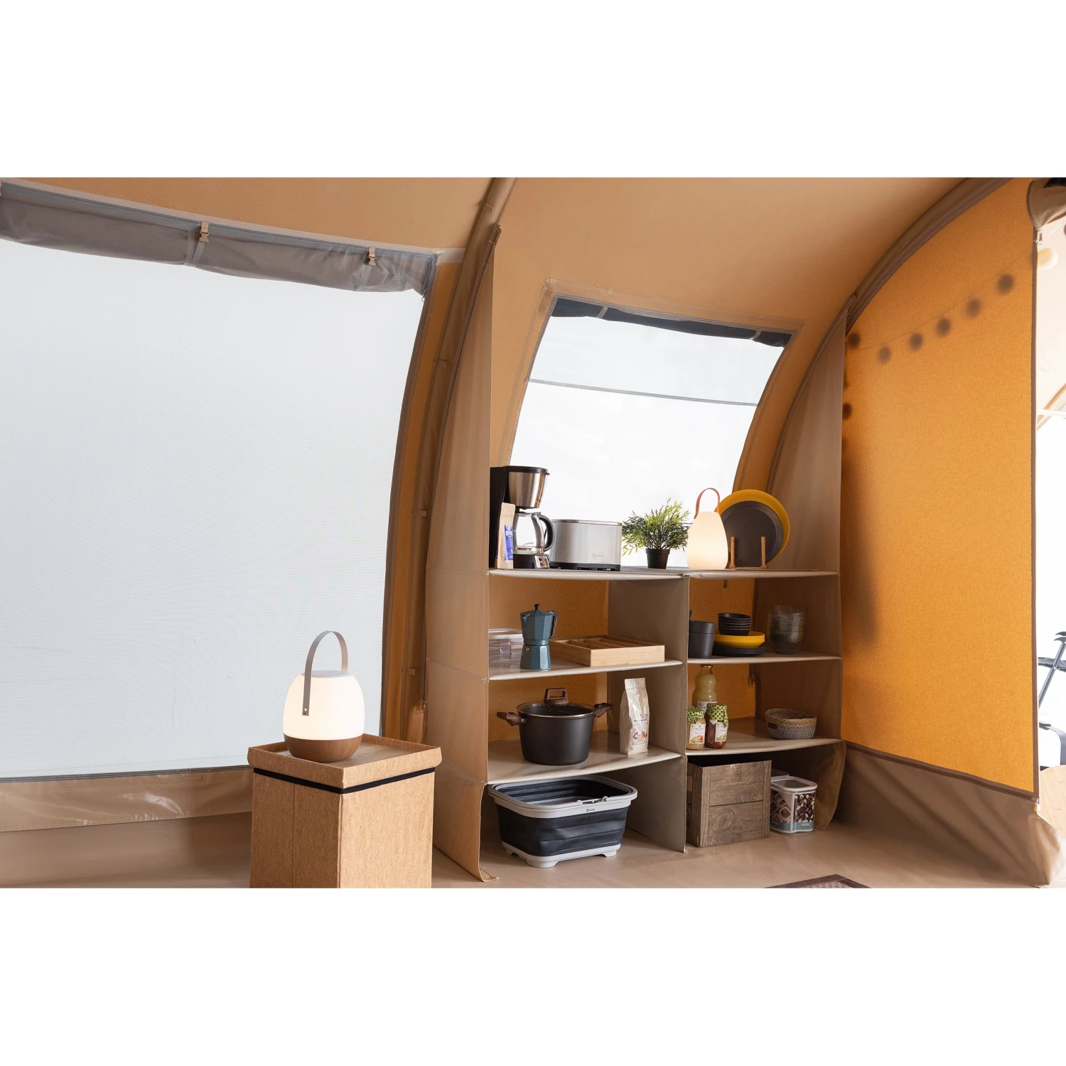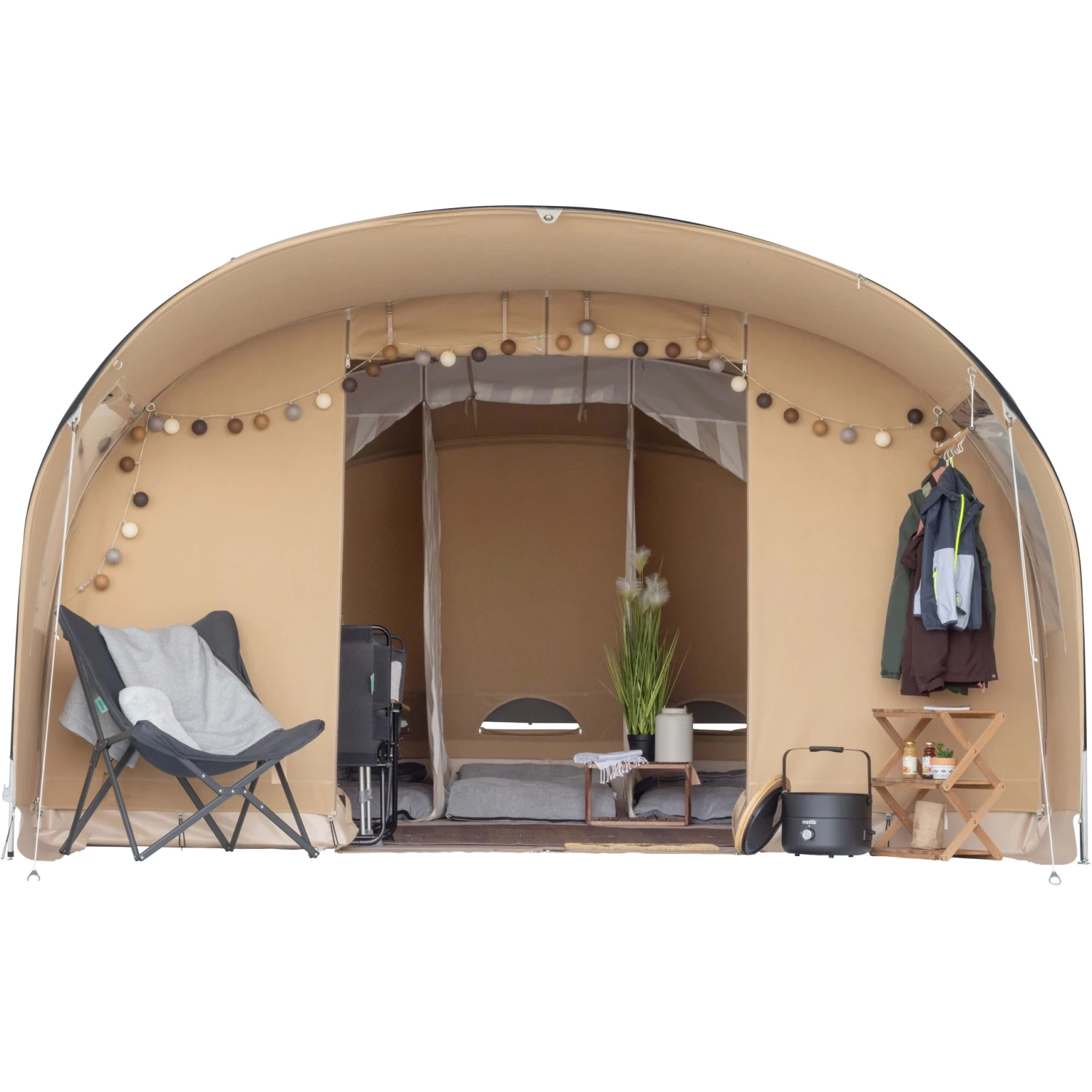 De familietent is voorzien van een luifel, waardoor u voor uw tent in de schaduw kunt zitten. Aan deze luifel zitten twee D-ringetjes, waaraan u bijvoorbeeld een kapstok kunt bevestigen. De luifel is uit te breiden met een optionele regenluifel. De slaapcabines zijn zeer diep en ruim. Hierdoor kunt u gemakkelijk uw bed en overige kampeerspullen kwijt in het slaapvertrek. Alle slaapvertrekken hebben ventilatieroosters voor een goede luchtstroom.