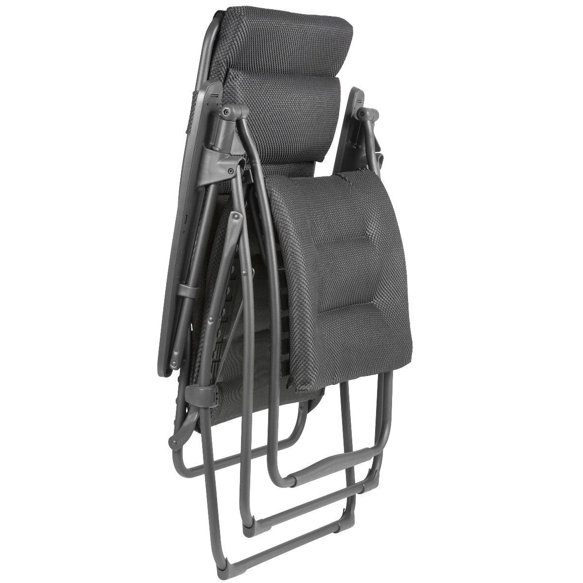 De relaxstoel is voorzien van een Be Comfort kussen. De drie lagen van dit kussen combineren ademende en waterdichte materialen waardoor het niet alleen een comfortabel kussen is maar ook luchtdoorlatend, duurzaam en sneldrogend. Het kussen is vastgemaakt aan het stalen frame met behulp van het het clipsysteem van Lafuma. De clips van elastomeer zorgen voor een nog betere ergonomie, optimale ondersteuning van de rug en het gemakkelijk vast- en losmaken van het doek.