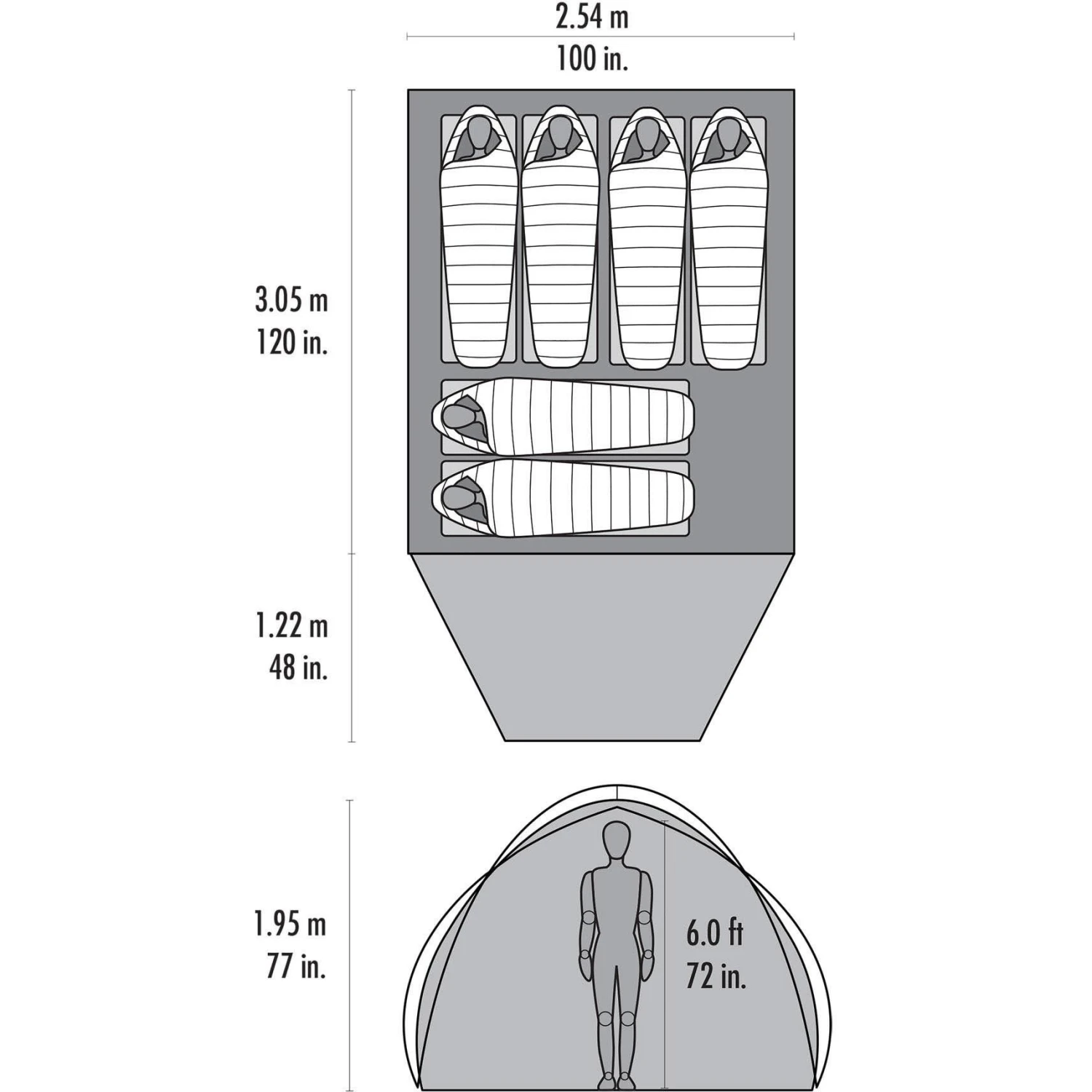 De MSR Habitude 6 lichtgewicht koepeltent is een lichtgewicht tent voor vier tot zes personen. Deze MSR tent is sterk gebouwd en daarmee geschikt voor primitief kamperen in uitdagende weersomstandigheden. Daarnaast biedt de tent ruimte én stahoogte aan avontuurlijke gezinnen. Het doek van de tent is gemaakt van 68D ripstop polyester en het frame is extra stevig en gemakkelijk op te zetten. De tent bestaat uit gebogen palen met kleurgecodeerde klemmen. De verticale zijwanden van de tent zorgen ervoor dat u comfortabel kunt bewegen en het strategisch geplaatste gaas zorgt voor meer privacy en een betere luchtstroom. De tent is uitgerust met opbergvakken voor iedereen.