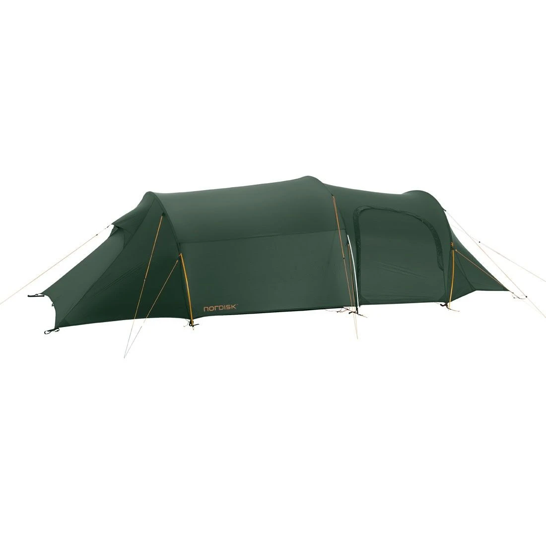 De tunneltent van Nordisk heeft een ruim leefgedeelte van 190 bij 210 cm. Zelfs met drie personen in de tent is er genoeg zitruimte en plaats voor uw bagage en bijvoorbeeld een kookstel.