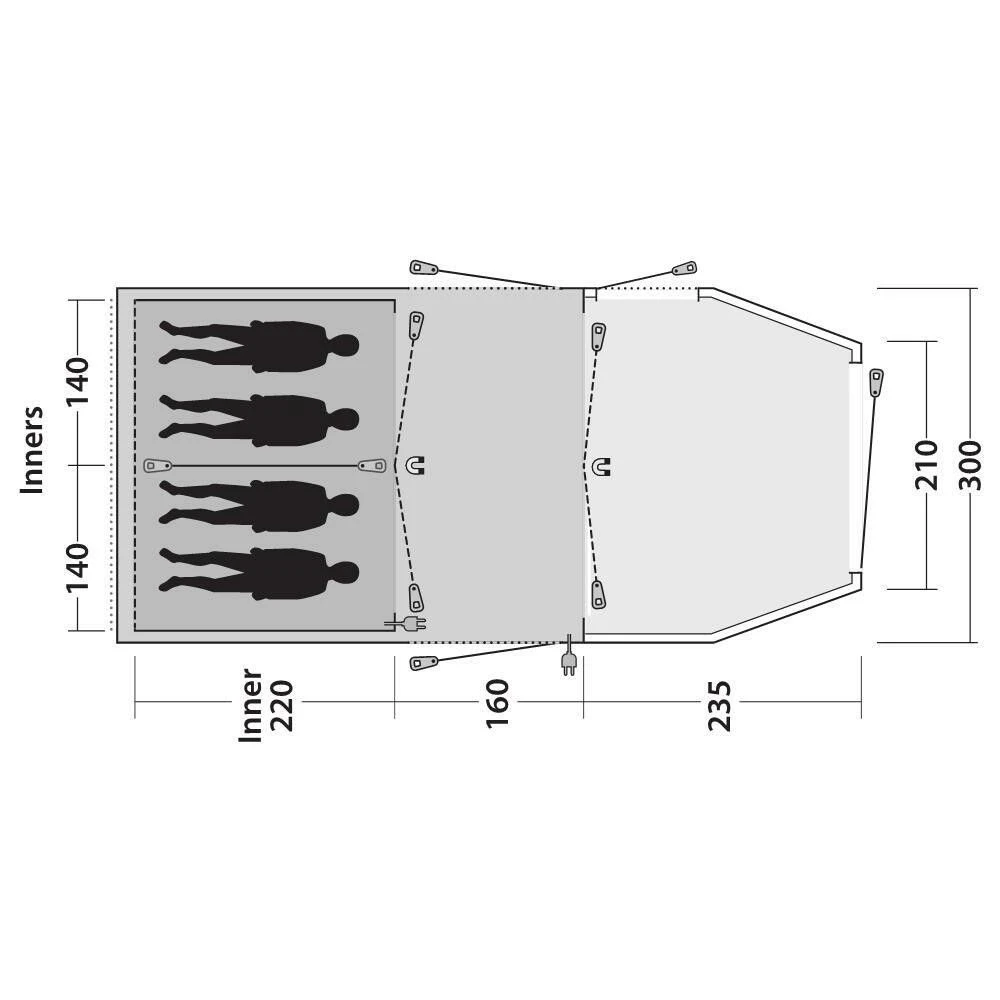 Met deze familietent komt u helemaal tot rust tijdens uw kampeervakantie. Deze familitent heeft een royaal leefgedeelte met een hoge stahoogte. Deze ruimte wordt goed geventileerd. Dankzij de grote ramen is er een fijne lichtinval en krijgt u een buitengevoel als u in de leefruimte zit. Het leefgedeelte heeft 2 deuren. Bij de ingang zit een horrengaas. Dit gaas zorgt ervoor dat er geen insecten binnen de tent komen.