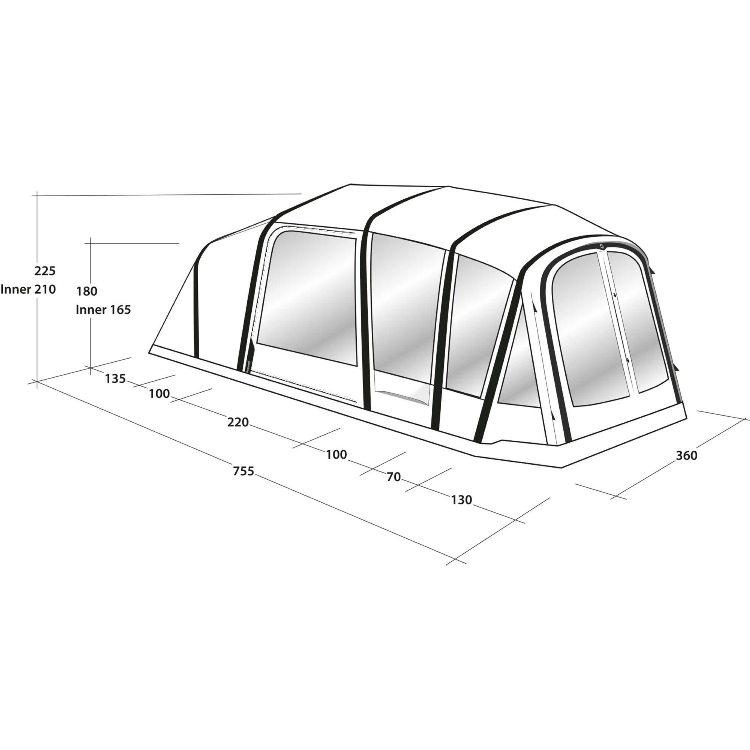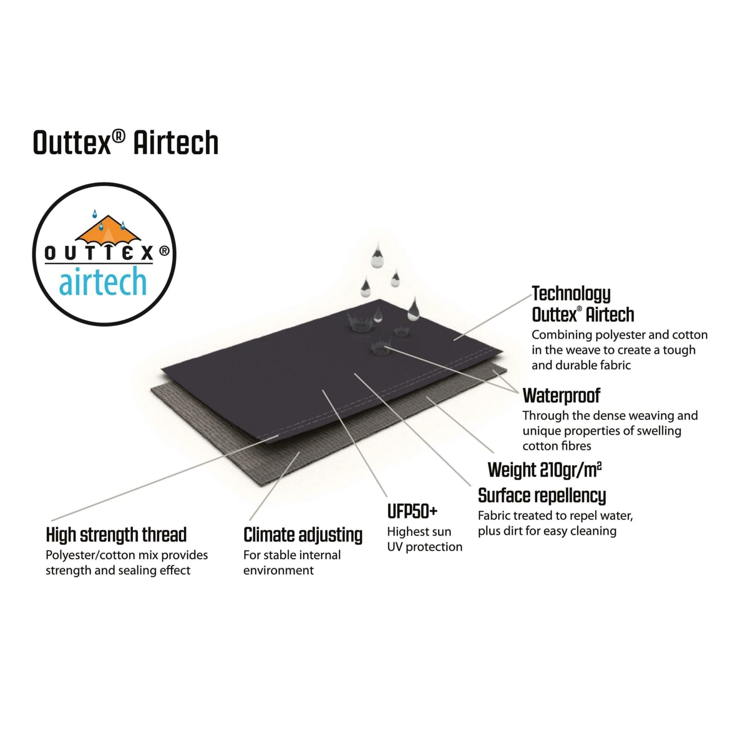 Het leefgedeelte heeft een ingenaaid grondzeil. Dit grondzeil zorgt ervoor dat het droog blijft binnen de tent. Verder heeft u veel privacy in de tent door de getinte ramen. De ramen zijn zeer royaal, waardoor u een buitengevoel krijgt. De gordijnen kunt u naar beneden rollen op zonnige dagen, zodat zonlicht niet binnen komt en het heerlijk koel blijft in de tent.