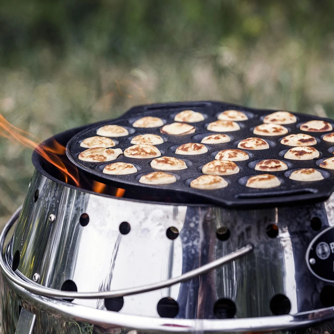 Met deze Petromax poffertjespan bakt u in één keer genoeg voor de hele familie! De pan heeft extra brede handvaten en is ook handig voor het bereiden van andere lekkere kleine gerechtjes.
