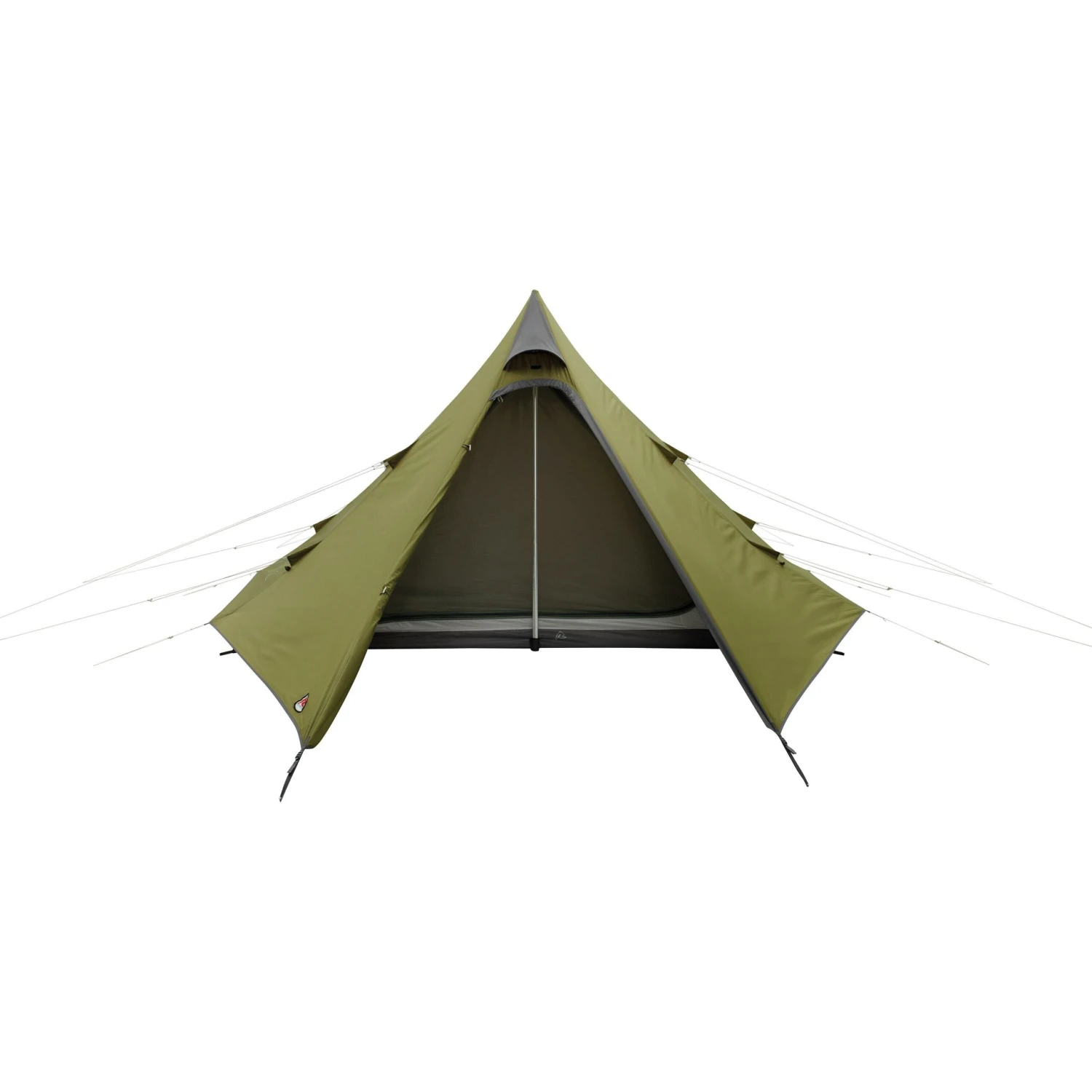 De Robens Green Cone 4 PRS lichtgewicht piramidetent is een veelzijdige vierpersoonstent met veel hoofdruimte. Deze Robens piramidetent heeft een centrale stok bij de ingang van de binnentent en grote voorruimte. Door de stok wordt de buitentent van de grond getild zodat er een betere luchtstroom gecreëerd wordt. Verder is deze lichtgewicht tent voorzien van lichtgevende ritsen en kan er gewicht bespaard worden door de binnentent te verwijderen. De Clamcleat scheerlijn en verstelbare haringlus met gesp zorgen ervoor dat de tent gemakkelijk op te zetten is, ook verbeteren deze de stabiliteit. Het buitendoek is gemaakt van ripstop polyester doek, dit werkt brandvertragend.