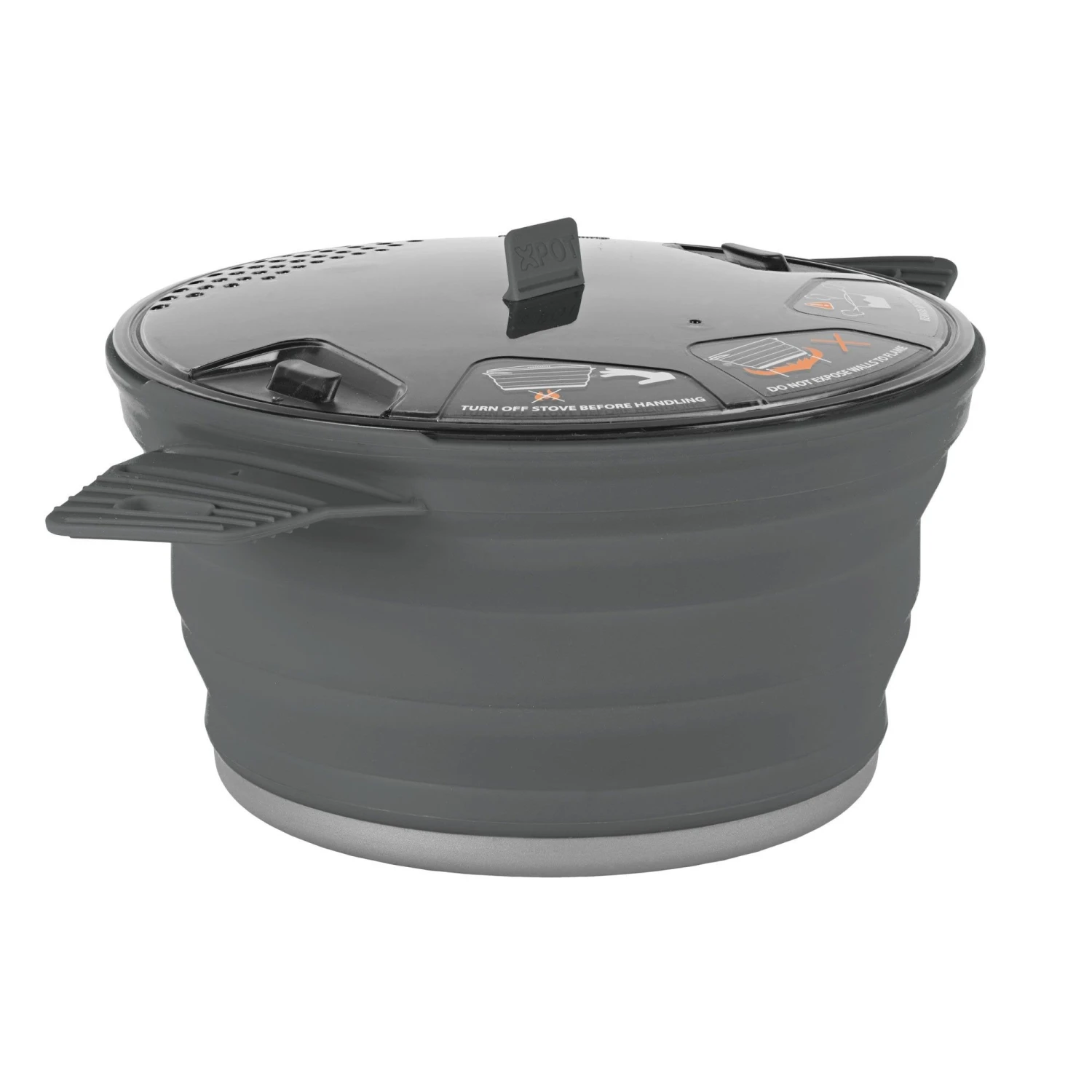 De Sea to Summit X-Pot opvouwbare pan heeft een inhoud van 2,8 liter. De onderkant van de pan is gemaakt aluminium en de zijwanden bestaan uit siliconen. De materialen zorgen voor een stevige basis en de pan is eenvoudig in de klappen. Hierdoor neemt dit model weinig ruimte in beslag. De pan weegt ongeveer 325 gram.