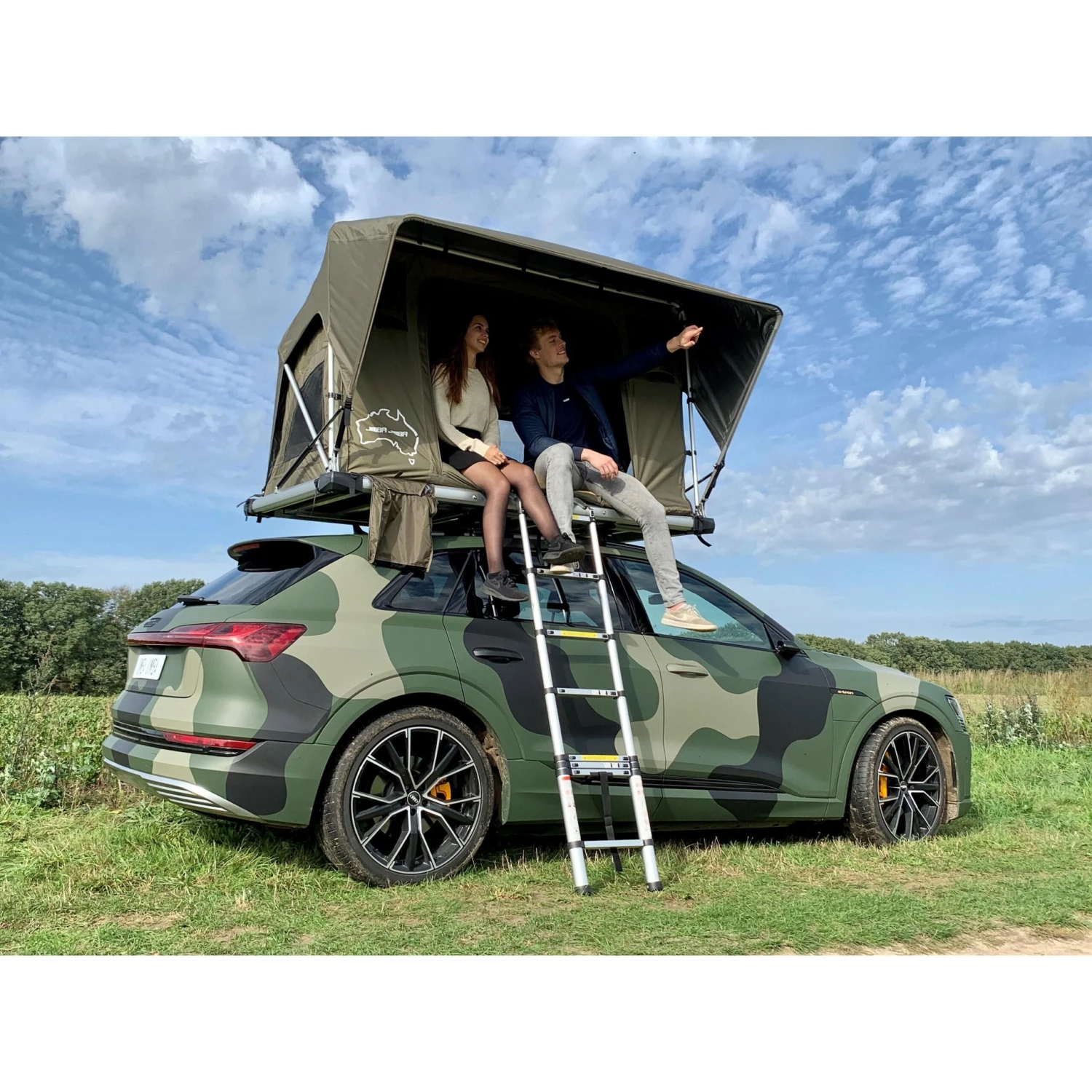 De Sheepie Jimba Jimba 2.0 Large daktent heeft een frame van massief, lichtgewicht aluminium. De Sheepie daktent is voorzien van een ruime ingang, natuurlijke luchtstroom en eenvoudige toegang met behulp van de telescopische ladder. Met zijn afmeting van 212 x 152 x 135 centimeter is de daktent geschikt voor maximaal twee volwassen personen. Verder is de tent aan de binnenkant afgewerkt met opbergruimtes waar u veilig uw eigendommen in kunt opbergen en twee schoenvakken.