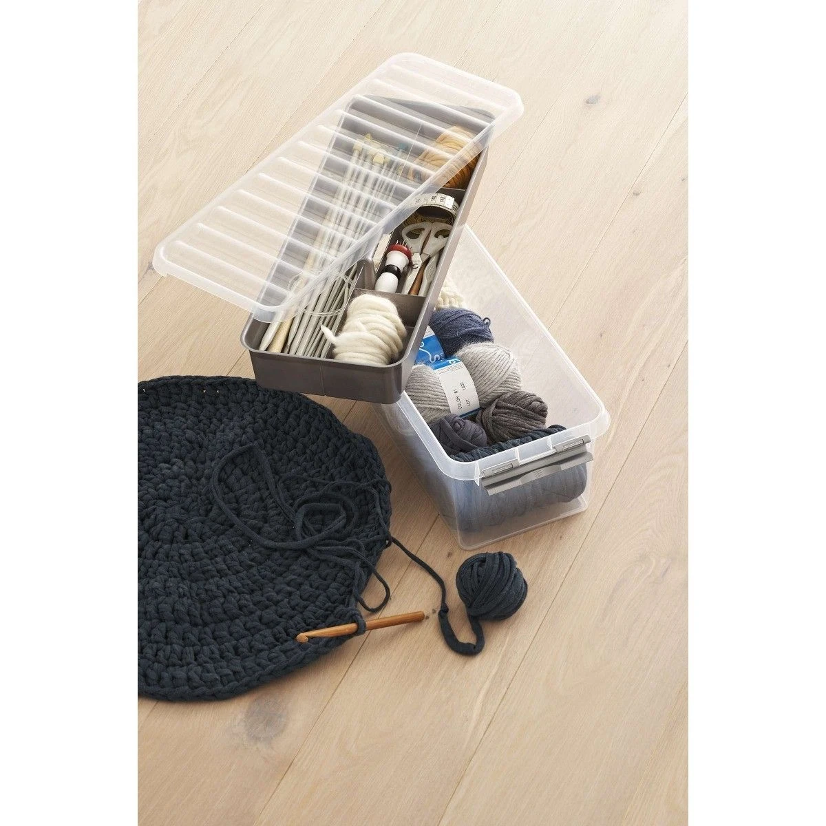 De Sunware Q-line 6,5L MultiBox heeft een langwerpig design wat ideaal is voor bijvoorbeeld tangen, schroevendraaiers en barbecuegereedschap. Deze Sunware opbergbox heeft 6,5 liter inhoud en wordt geleverd met handige inzet met vakverdeling. De Q-line MultiBox is handig te stapelen in combinatie met vele andere maten Q-line boxen van Sunware. Door de stevige sluitclips blijft het deksel goed op zijn plaats en worden uw spullen vocht- en stofvrij opgeborgen.