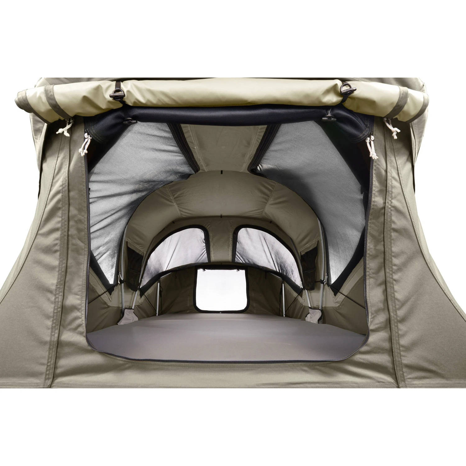 De Thule Approach M daktent in de kleur pelican grey is voorzien van panoramische dakopeningen en ramen. Deze stellen u in staat om naar de sterren te kijken, dichter bij de natuur te komen en de tent koel en goed geventileerd te houden. Ook is dit model uitgevoerd met afsluitbare montagebeugels en de afneembare regenhoes met drie verschillende standen is geschikt voor elk weer. De daktent is snel op te zetten en heeft een dubbellaags schuimmatras voor een luxe kampeerervaring.