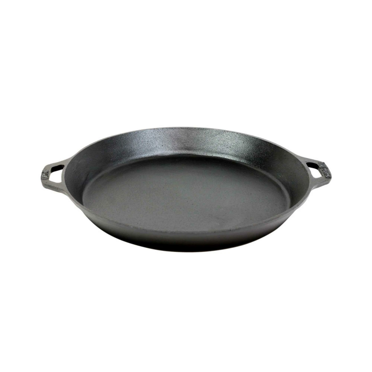 Deze Valhal Outdoor Skillet gietijzeren braadpan is geschikt voor alle warmtebronnen en kan meteen worden gebruikt omdat deze al is behandeld met natuurlijke olieën. Deze pan heeft een diameter van 50 centimeter, dus kunt u makkelijk grote gerechten bereiden. De pan is gemaakt van een hoge kwaliteit gietijzer. Aan de zijkanten zijn tuiten geplaatst voor het gieten van sauzen of andere vloeistoffen die u heeft bereidt. Dankzij de twee handvatten kan de braadpan makkelijk worden opgetild wanneer het eten klaar is.